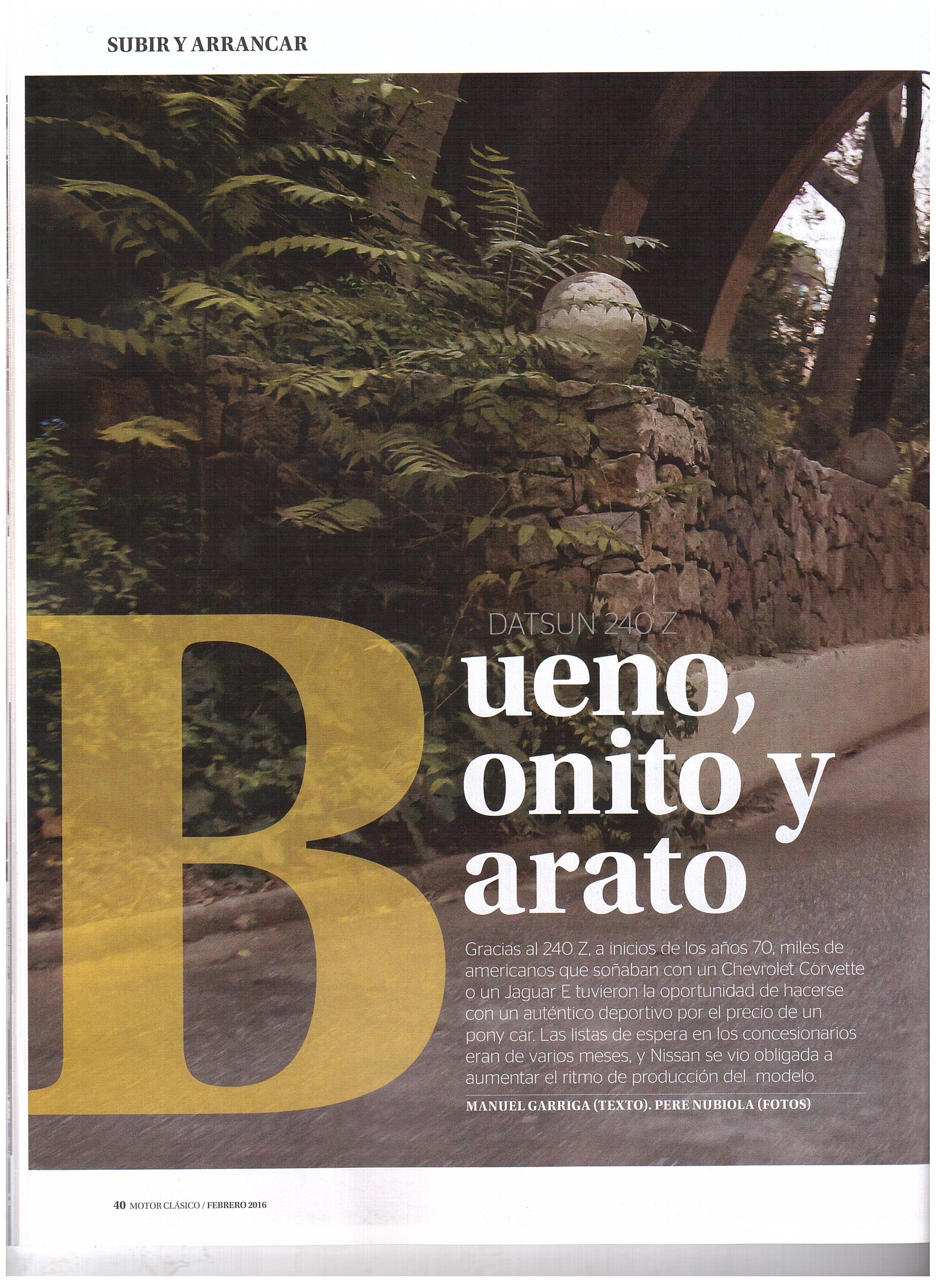 Le magazine espagnol "MOTOR CLASICO " publiera, dans son prochain numéro un article consacré à la Datsun 240Z. Dans la photo, l’exemplaire essaie, photographié aux années ‘90 dans le circuit Can Padro