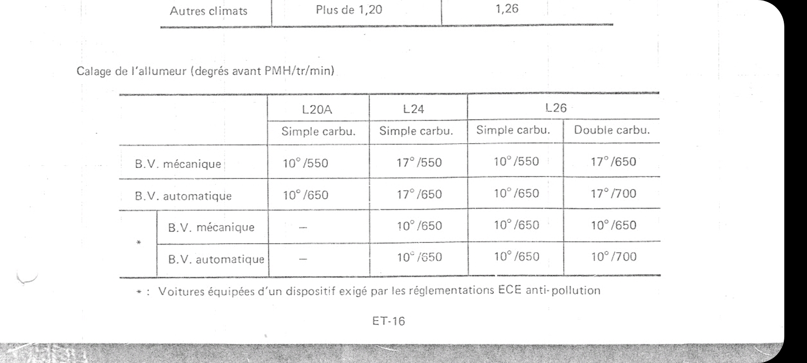Je suis donc parti sur une avance à 17° (l26 double carbu sans antipollution) et sur les courbes de l allumeur d609-56 ( l26 sans antipollution).