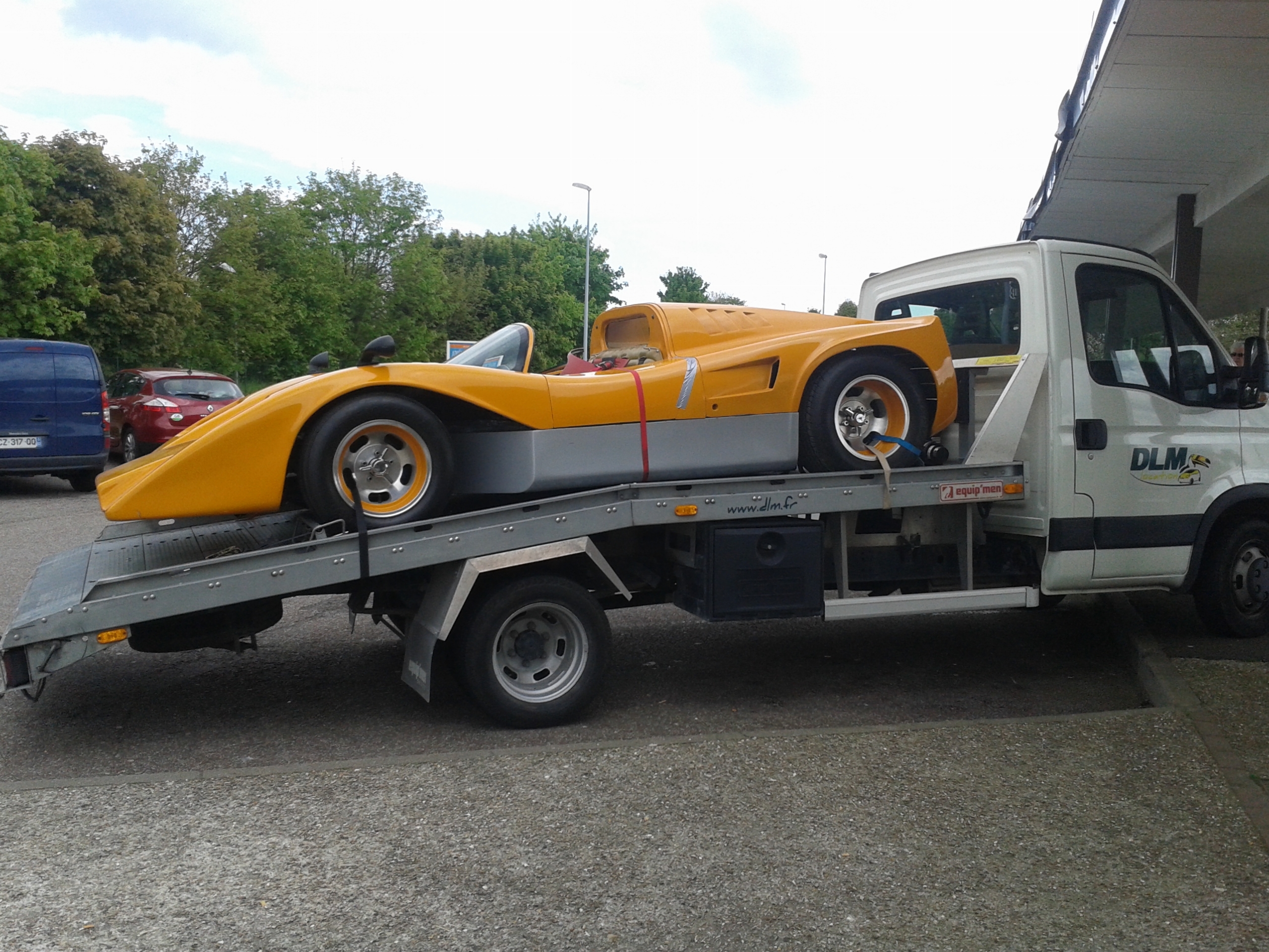 Après un voyage par la route entre le nord du Texas et Miami, un séjour en container pour traverser l'Atlantique, et un dépotage/dédouanement au Havre, il est venu le temps de rapatrier l'engin à Reims: Ce fut fait jeudi, et elle est dans le garage! Pour dire Exotique, le qualificatif est à peine à la hauteur!