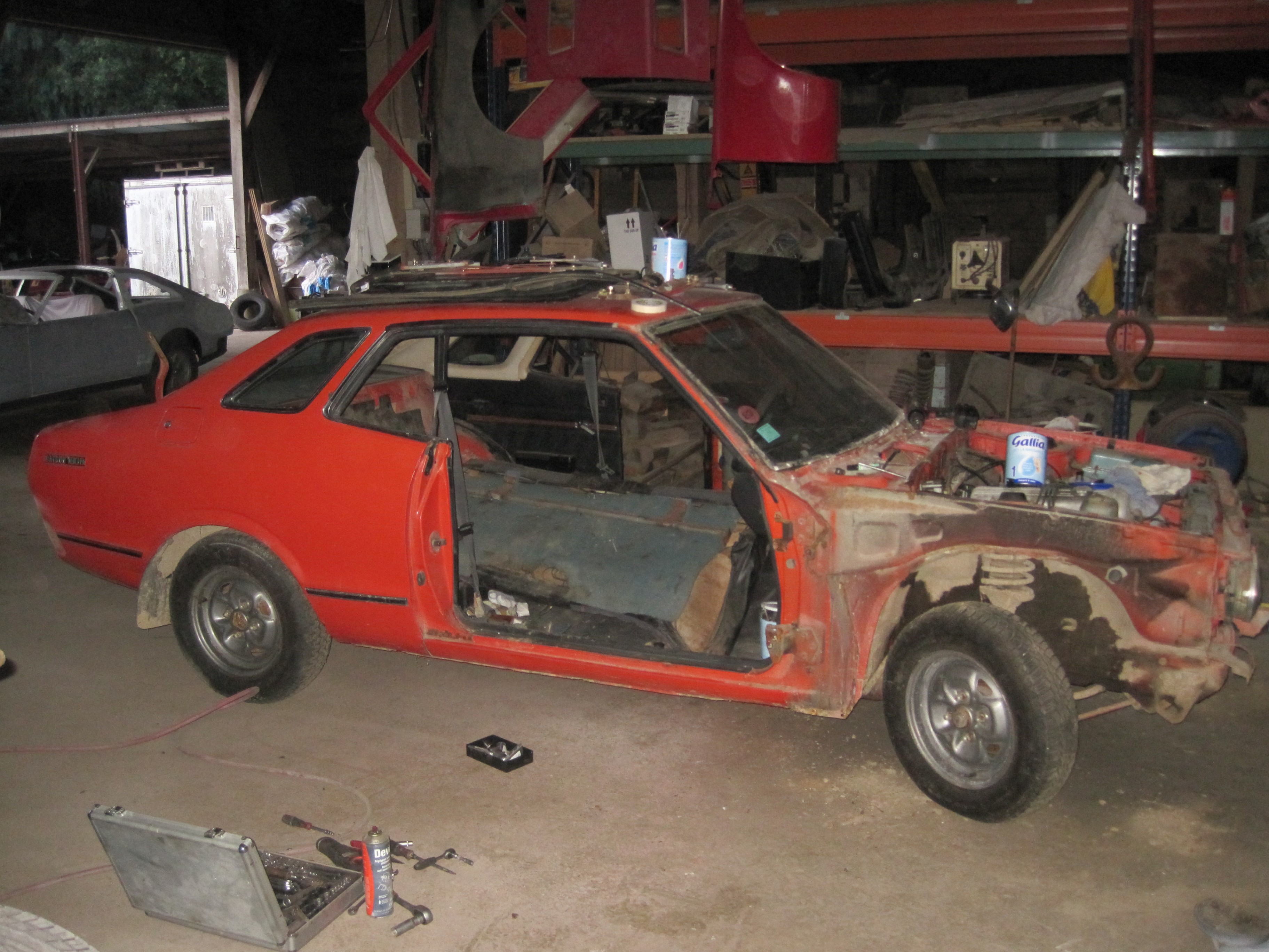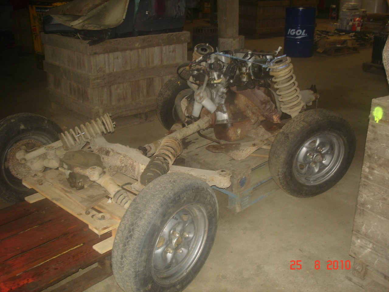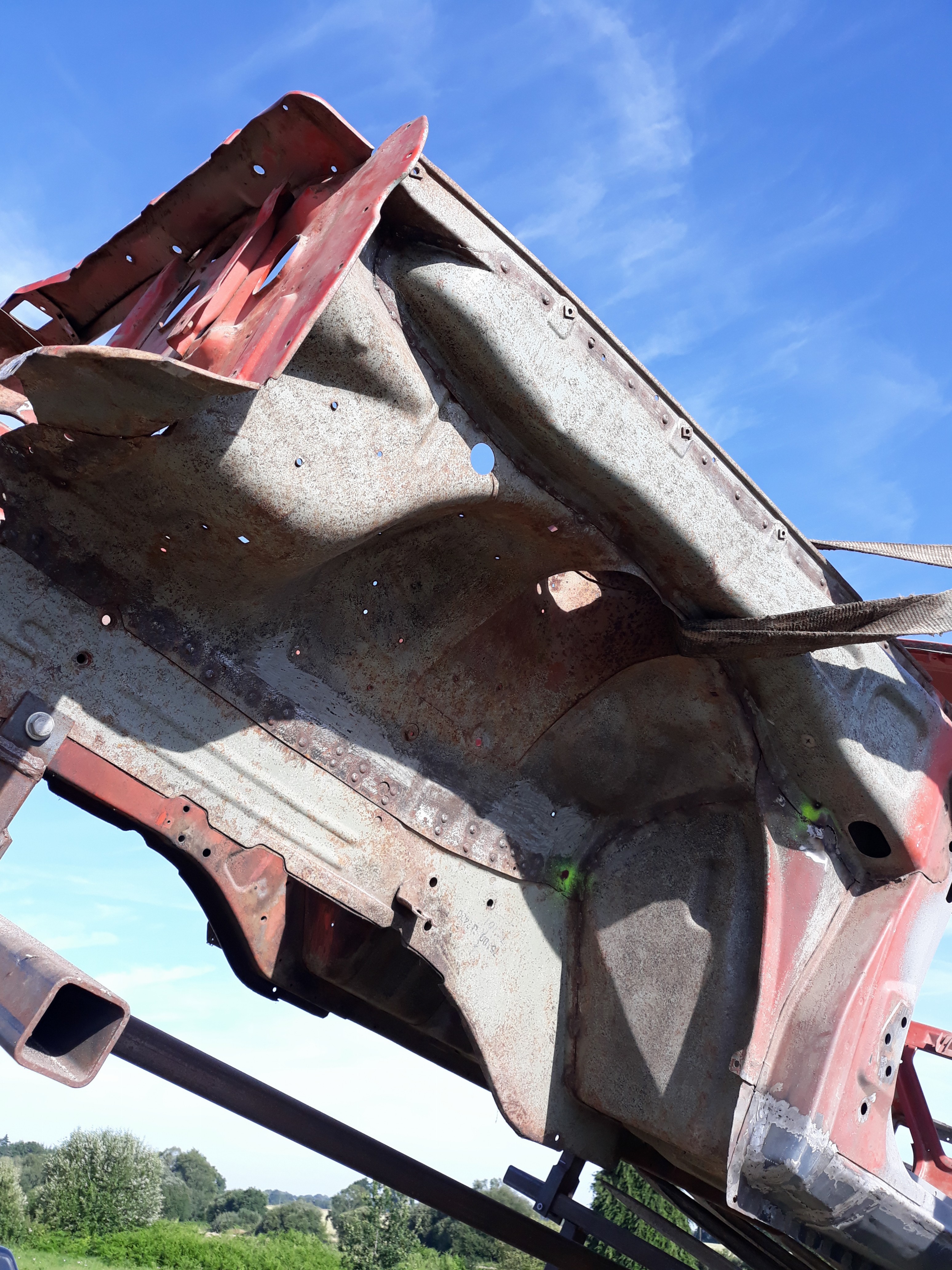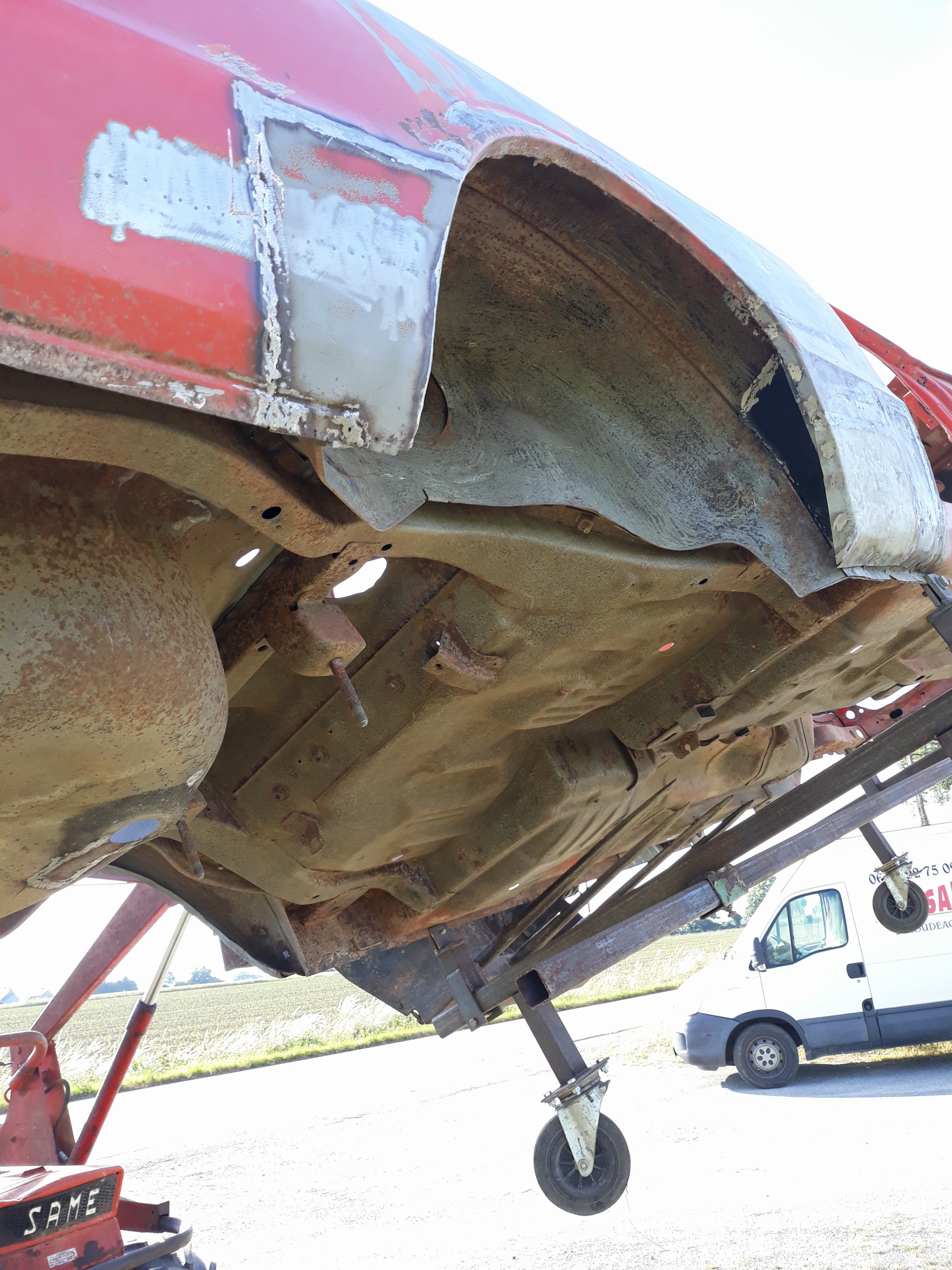 Après plusieurs dizaine de devis pour faire la carrosserie peinture la voilà enfin parti chez un carrossier, elle est désossée complete depuis fort longtemps (2010)