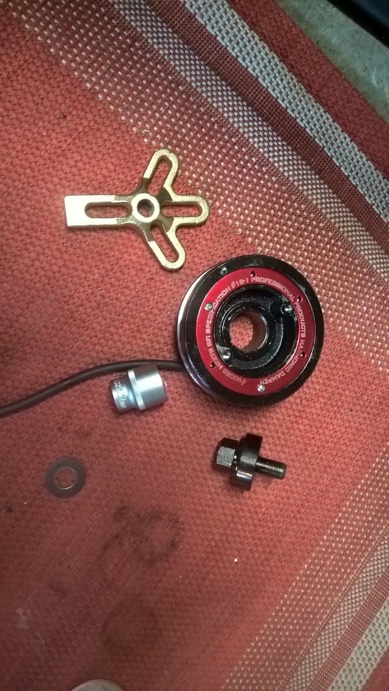 Suite aux péripéties de la poulie damper de chez M.S.A , au final remontage de l 'ancienne poulie.Je pense qu'il me faudra agrandir au millième cette dernière car il m'a été impossible de l'insérer.
