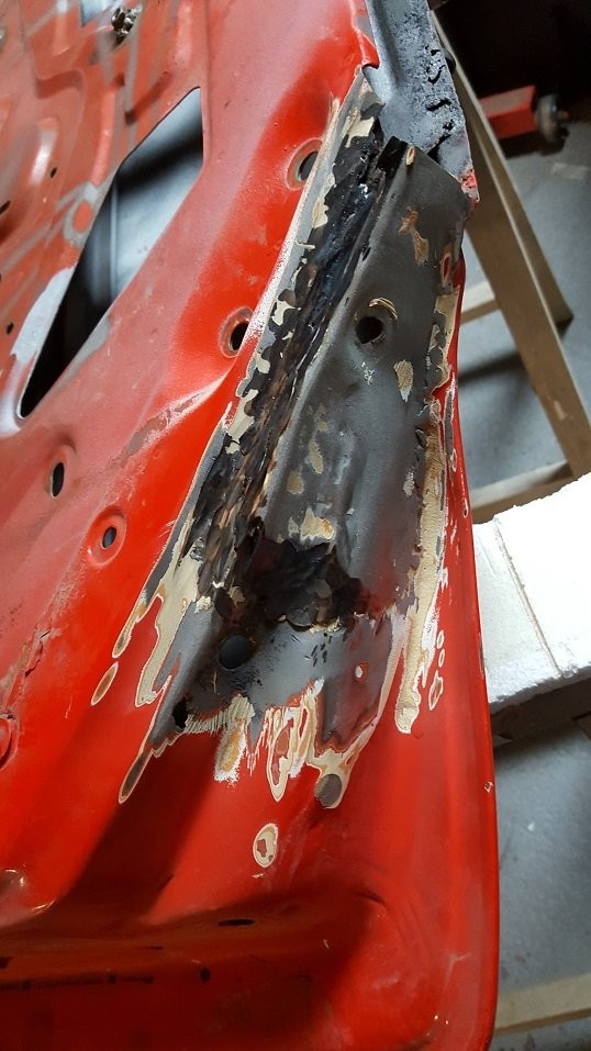 pour la plaque soudée sur le haut, une fois la vitre retirée, on a pu voir que c'était pas en bon état en dessous (on s'en doutait lol)
