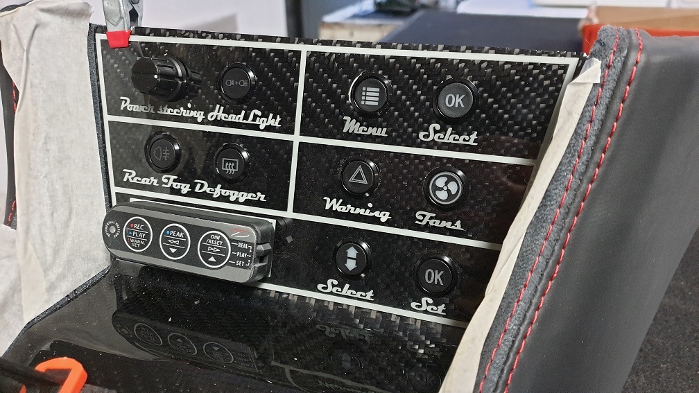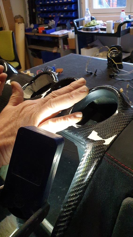la console centrale se voit équiper de son cache en carbone qu'il faut coller.