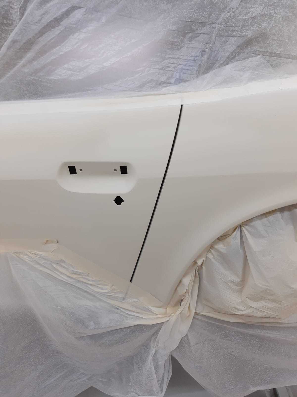 La voiture est toute blanche, encore quelques coups de cales à poncer et elle part en peinture.