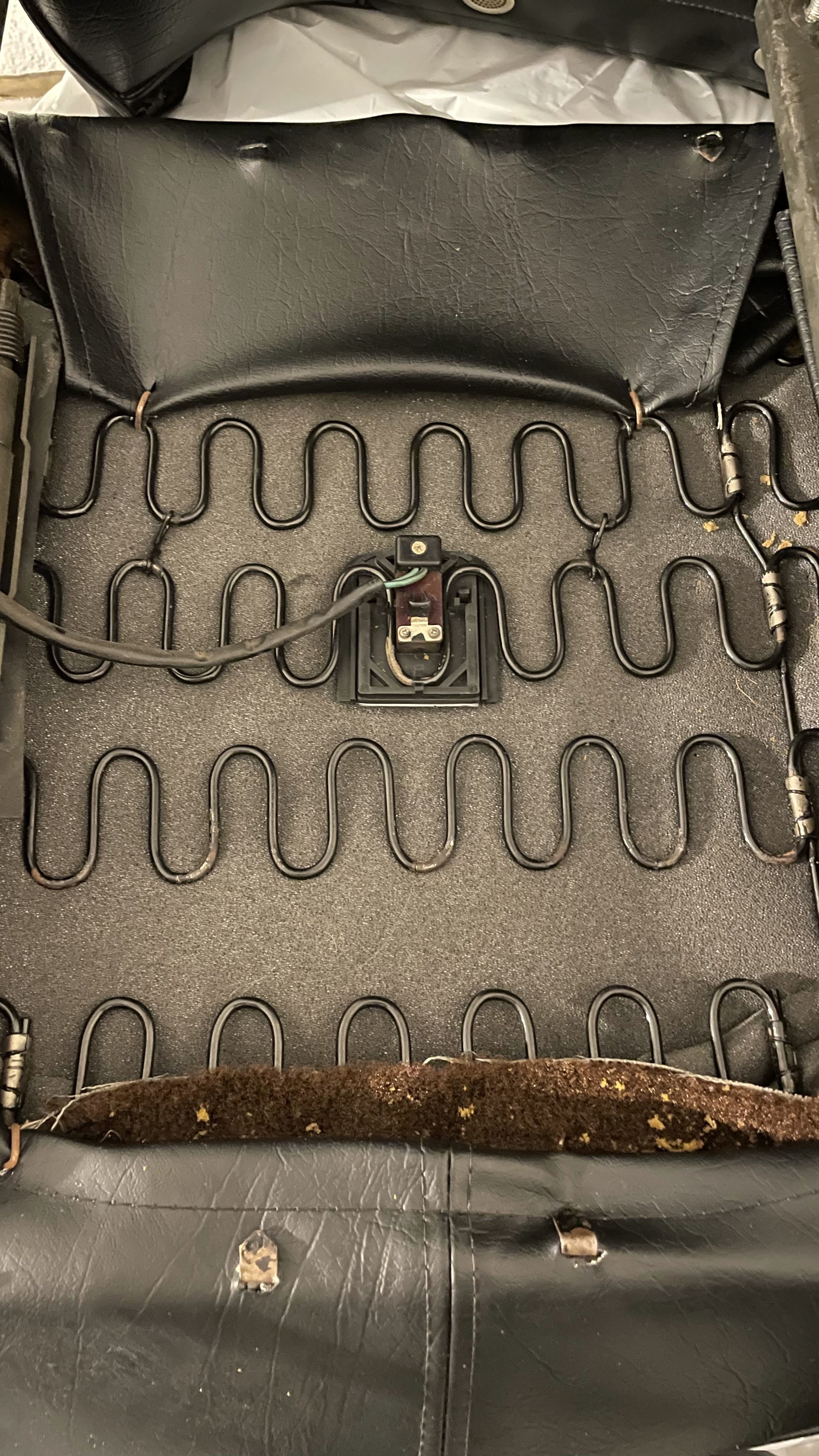 Je me suis lancé dans la semi restauration de mes sièges, dont la jutte en dessous de l'assise se délitait et transformait mon intérieur en poulailler j'ai viré tout ça et je l'ai remplacée par une mousse haute densité. C'est nettement plus propre, et ca fera très bien l'affaire en attendant de refaire la sellerie complète. Au passage, j'ai reproduit les plastiques de protection des charnières à l'identique avec un plastique de la même épaisseur (1mm).