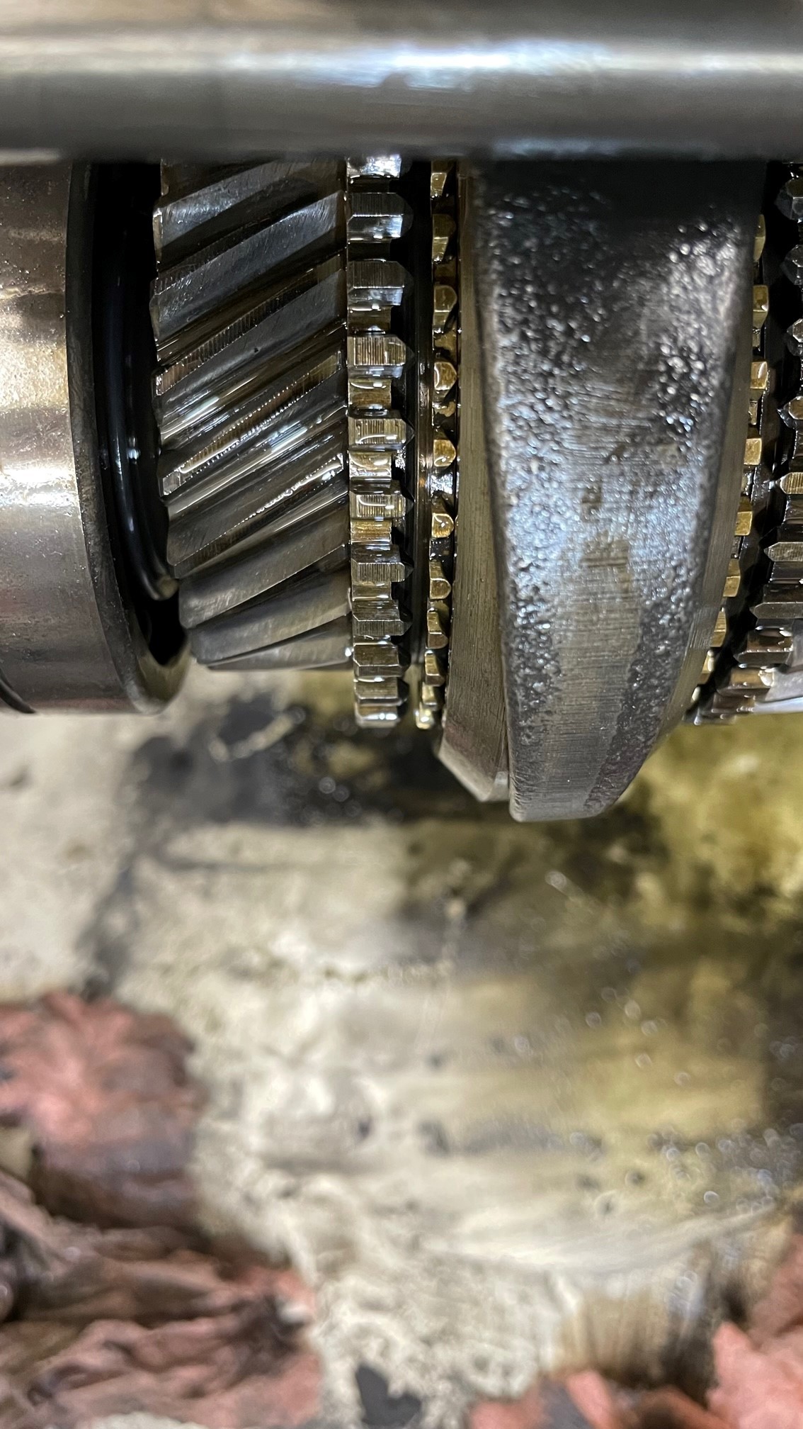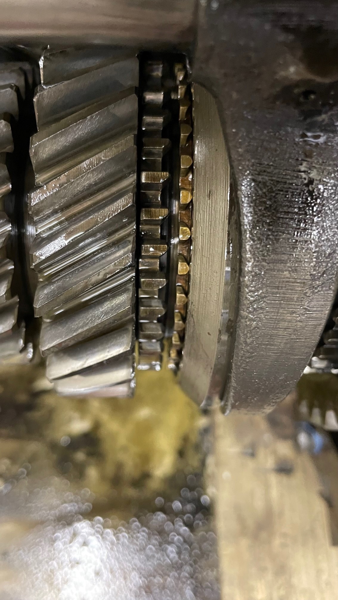 J'en suis venu à déposer et ouvrir ma boîte pour changer tous ses joints et bonhommes de verrouillage ("detent springs"), et j'ai inspecté les synchros. Je suis incapable de juger la gravité, mais je vois que la 2nd et la 4ème sont usées (alors que 1ère et 3ème sont en très bon état). J'aurais aimé avoir votre avis : usure normale et de quoi continuer encore un moment? Cuites et il faudra faire une réfection asap?