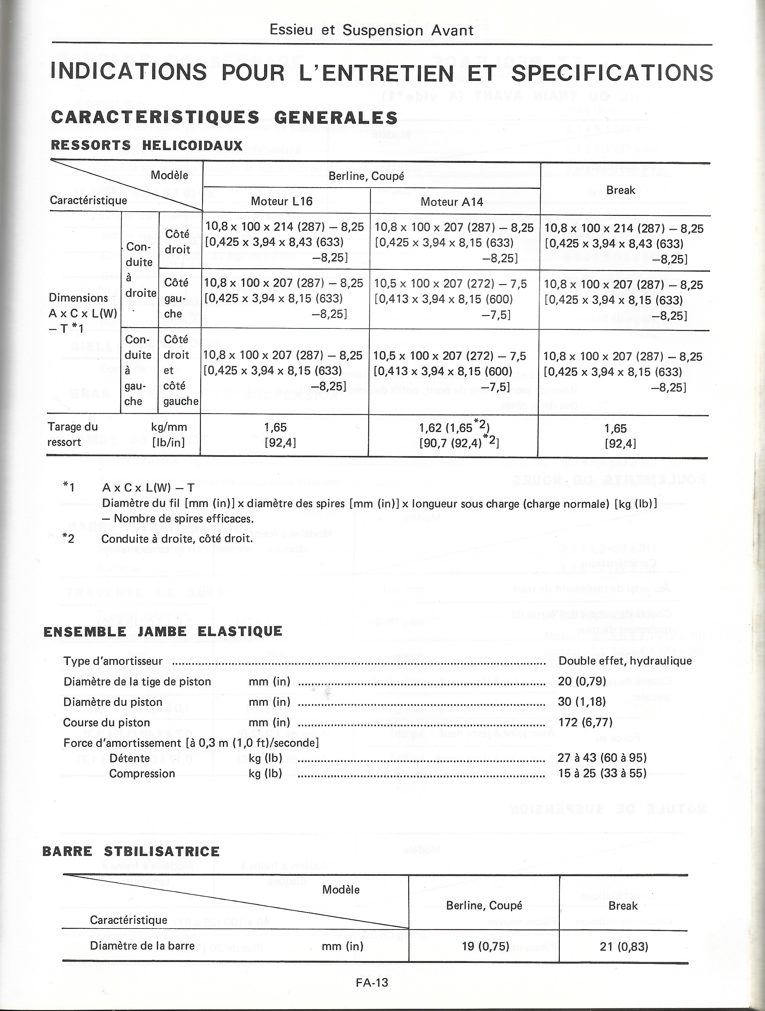 - 4 amortisseurs (référence du modèle).