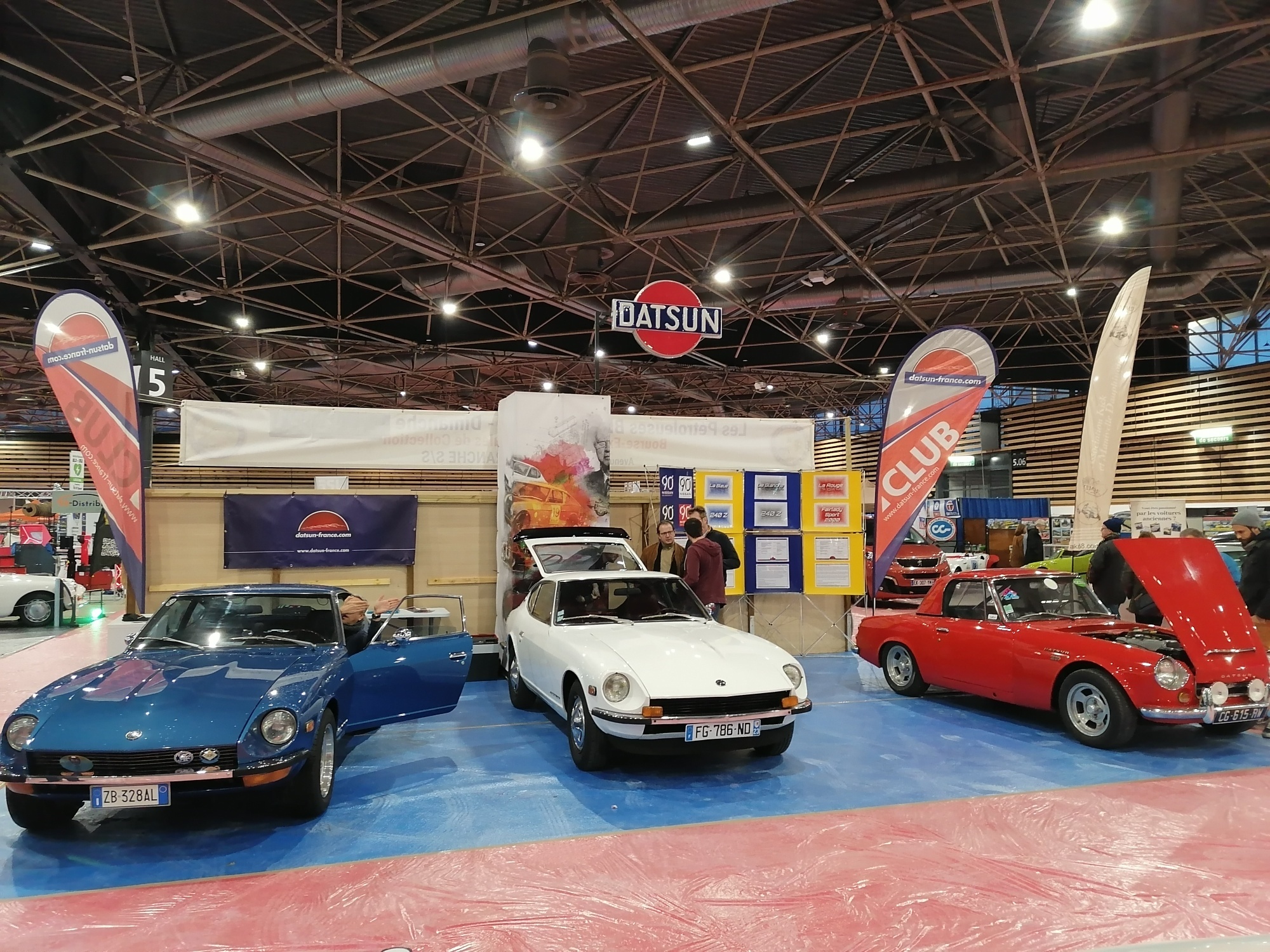 -Un Stand Datsun France magnifique, visible de loin, avec 3 merveilles exposées, en Bleu, Blanc et Rouge. Un accueil formidable, comme chaque année, des rencontres avec des éminences du Club , des commandes avec l'incontournable et si serviable Florian, des discussions autour de notre marque de coeur... Que le temps passe vite lorsque la passion est là...