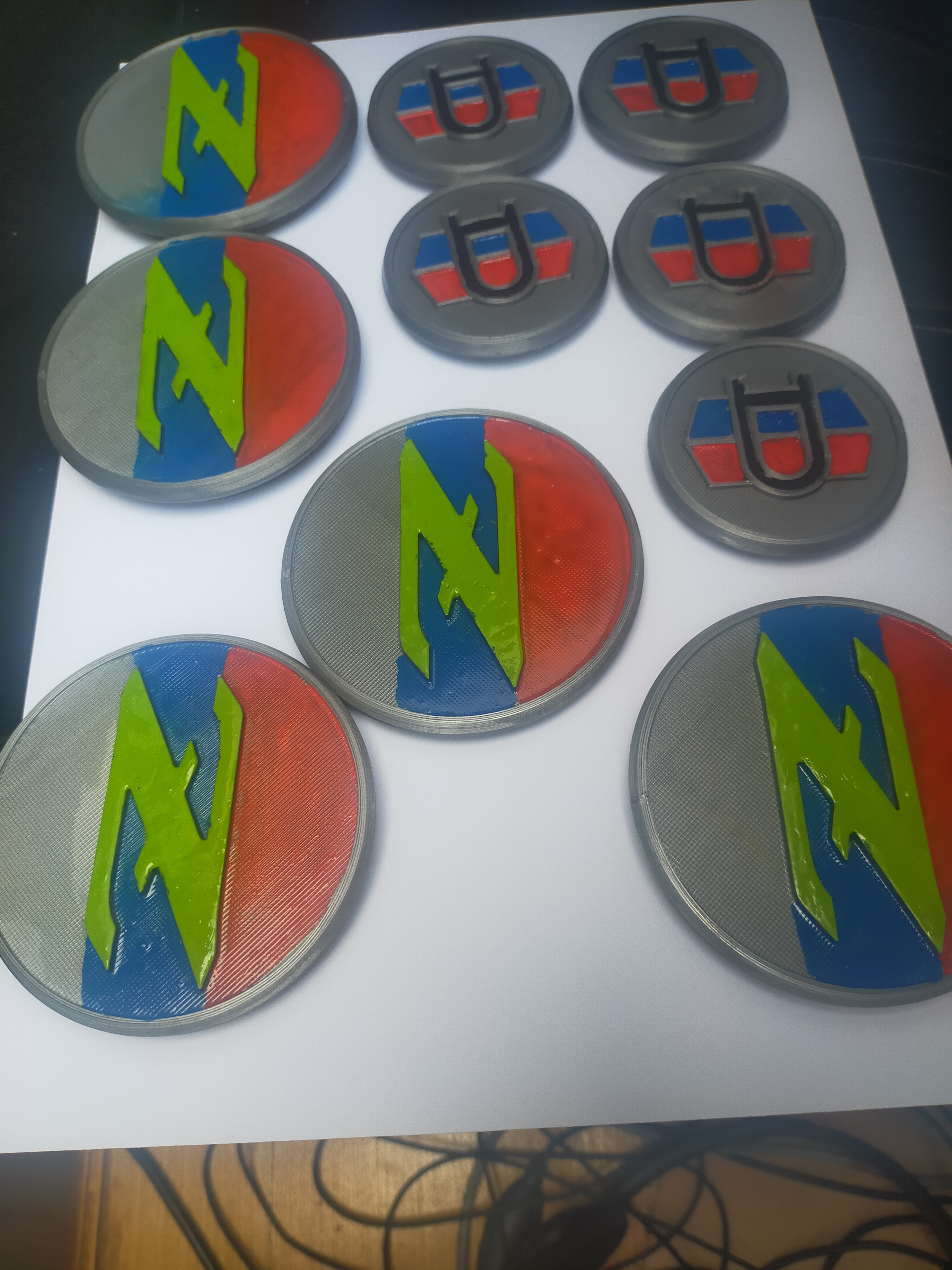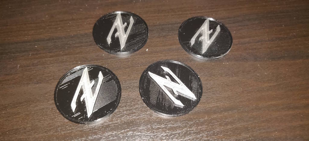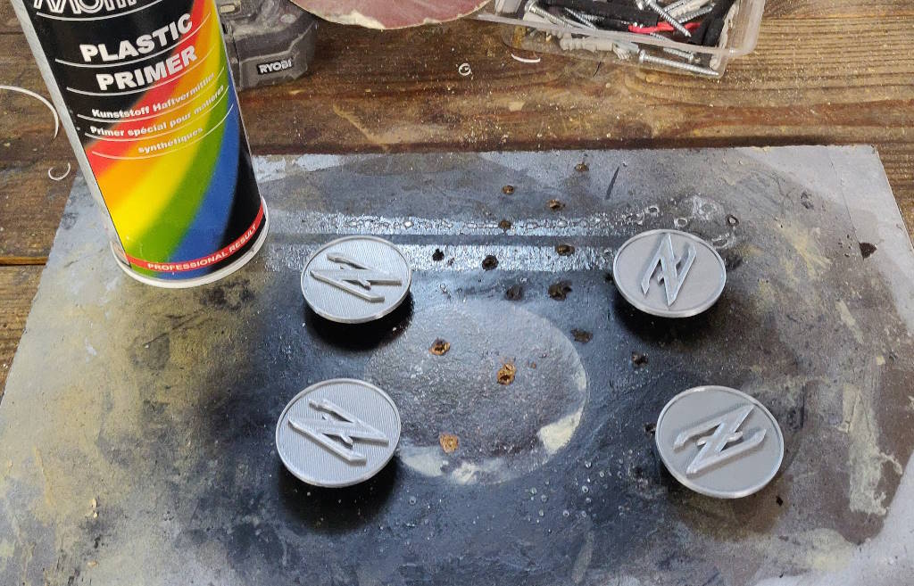 Voilà à quoi ils ressemblent. J'ai choisi de les faire gris. Je les ai ensuite peints en noir pour pouvoir ensuite poncer le logo qui redevient gris.