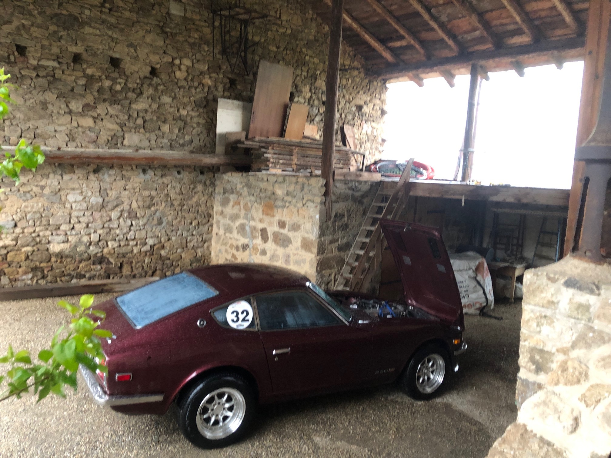Malheureusement ce sont des trombes d’eau qui se sont abattues sur les participants et sur ma 280Z qui d’habitude ne voit jamais la pluie .