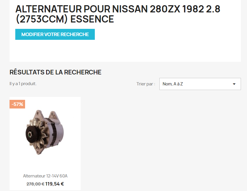 Pour l'alternateur j'avais trouvé un 280zx (régulateur incorporé) à 101€ fdp in chez Motorselec