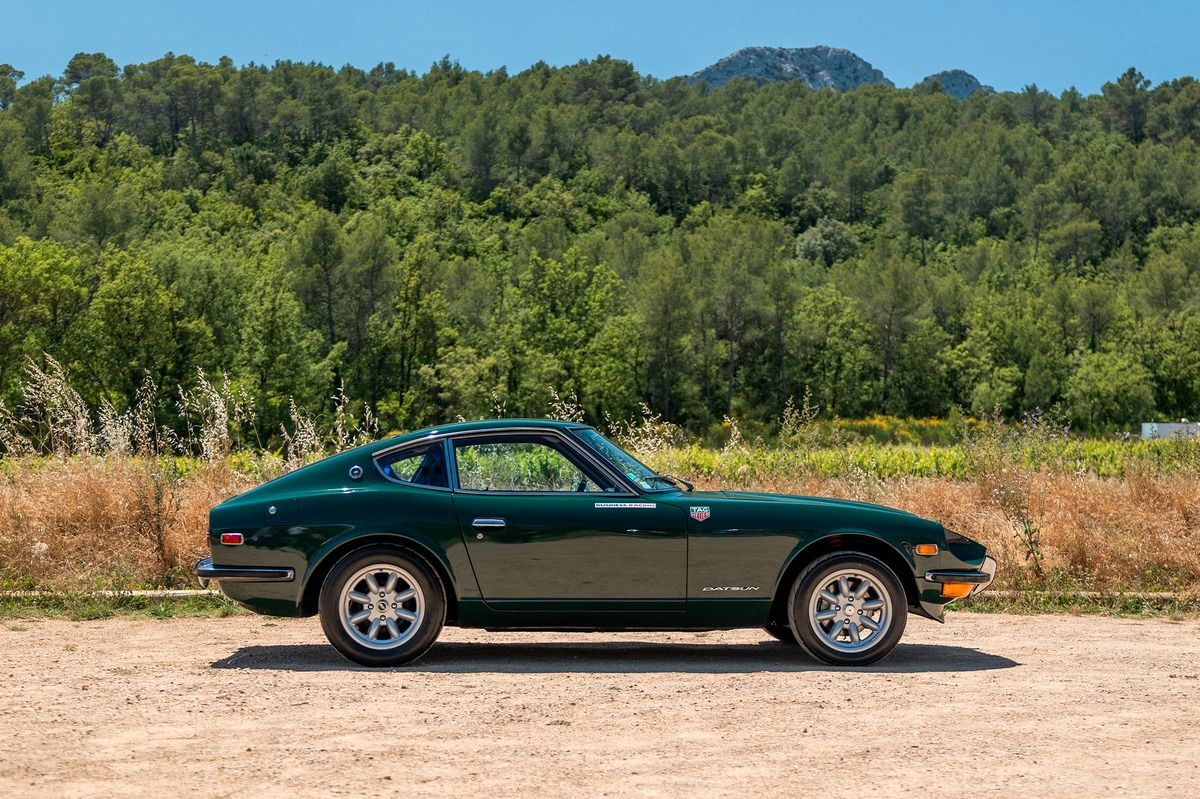 Je suis l'heureux propriétaire de cette Datsun 240z couleur British Racing. (d'ailleurs savez vous ou je peux trouver cette peinture ?). Elle a une préparation VHRS, et je vais la préparer en VHC pour faire le Tour Auto, Tour de corse, et Le Mans classic. Je participe déjà a ces courses avec une Matra Bonnet Djet 5s et une Clio WIlliams.