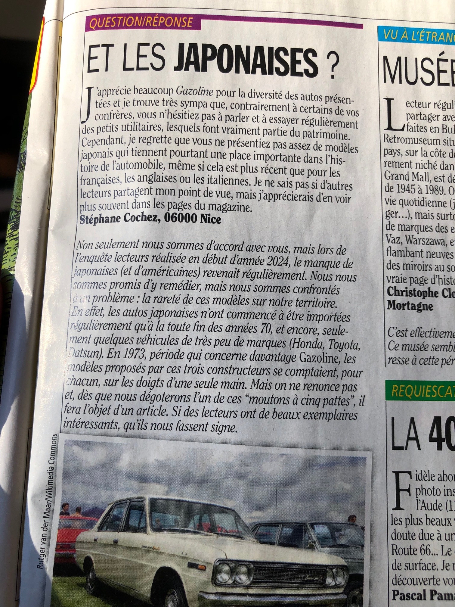 Merci Magic, le bureau du club connait Stéphane Guitard et il y a eu déjà des éditions sur la 280ZX par ex (feuilleton restauration) dont le dernier en date est le numéro 320. La Z est aussi déjà connu par Gazoline (Janvier 2023, numéro 306). Il faudrait des modèles comme la Cedric, la 510... par ex. et c'est vrai qu'on en a pas beaucoup hélas...Scorpion93, Sodeskhahhh