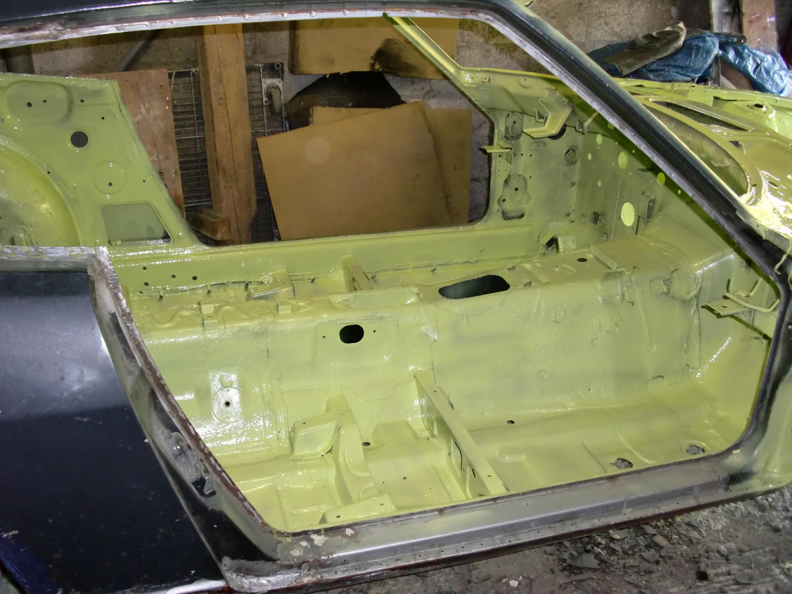 Un dimanche ensoleillé, j'en ai profité pour peindre l'intérieur et le compartiment moteur à la peinture polyuréthane bi-composant, une couche au pistolet bien chargée, après avoir traité l'ensemble à la résine époxy teintée.