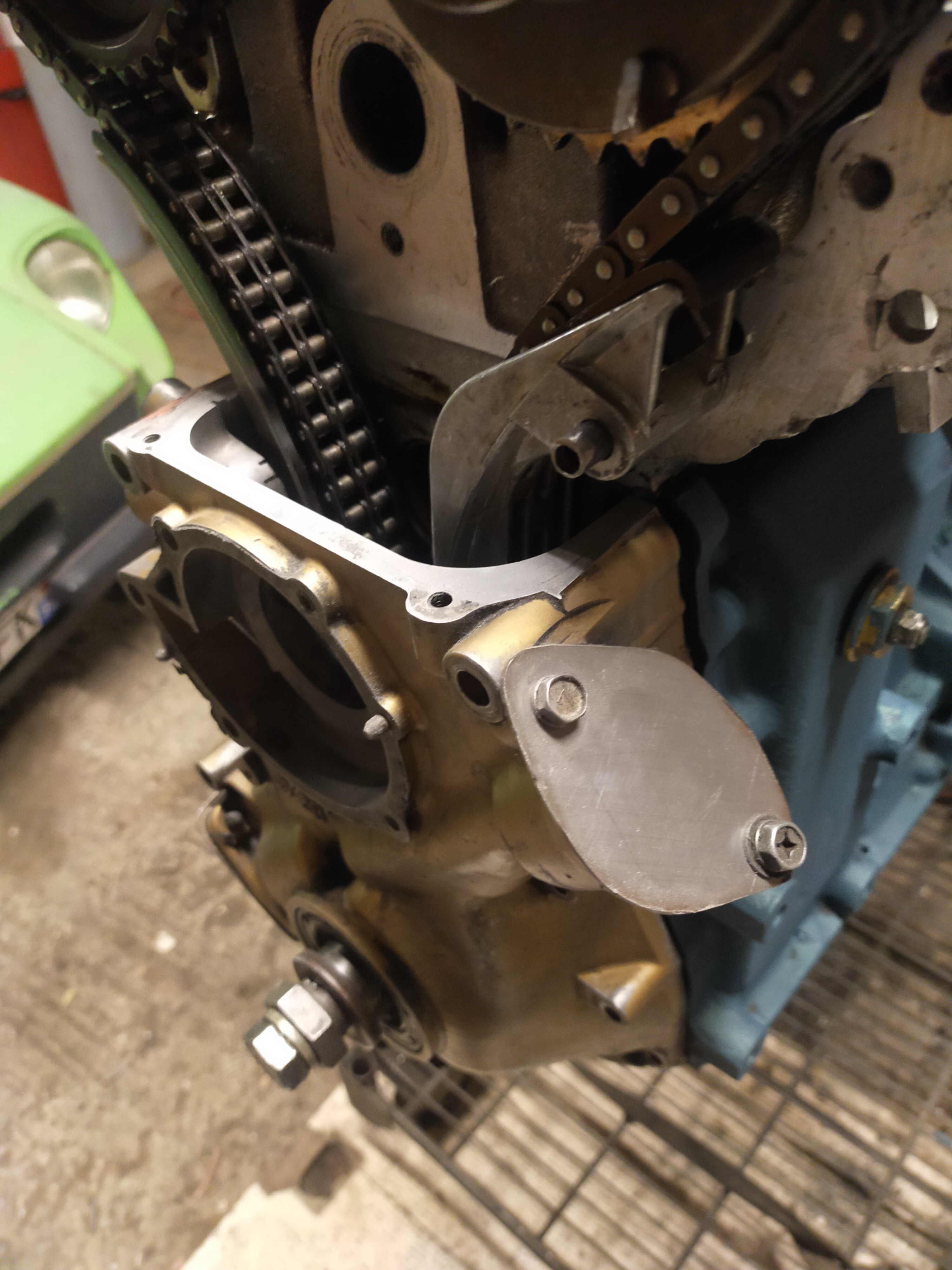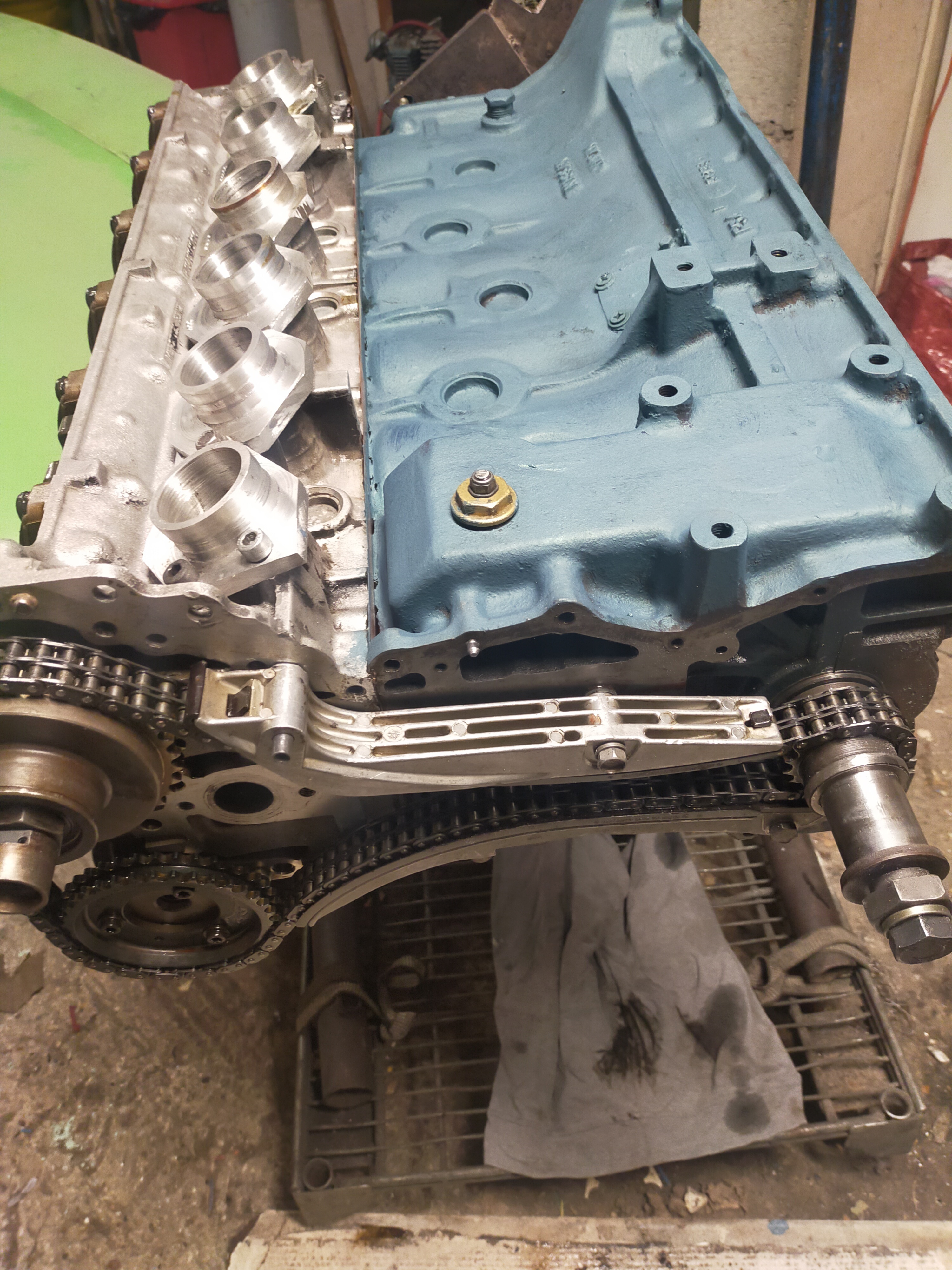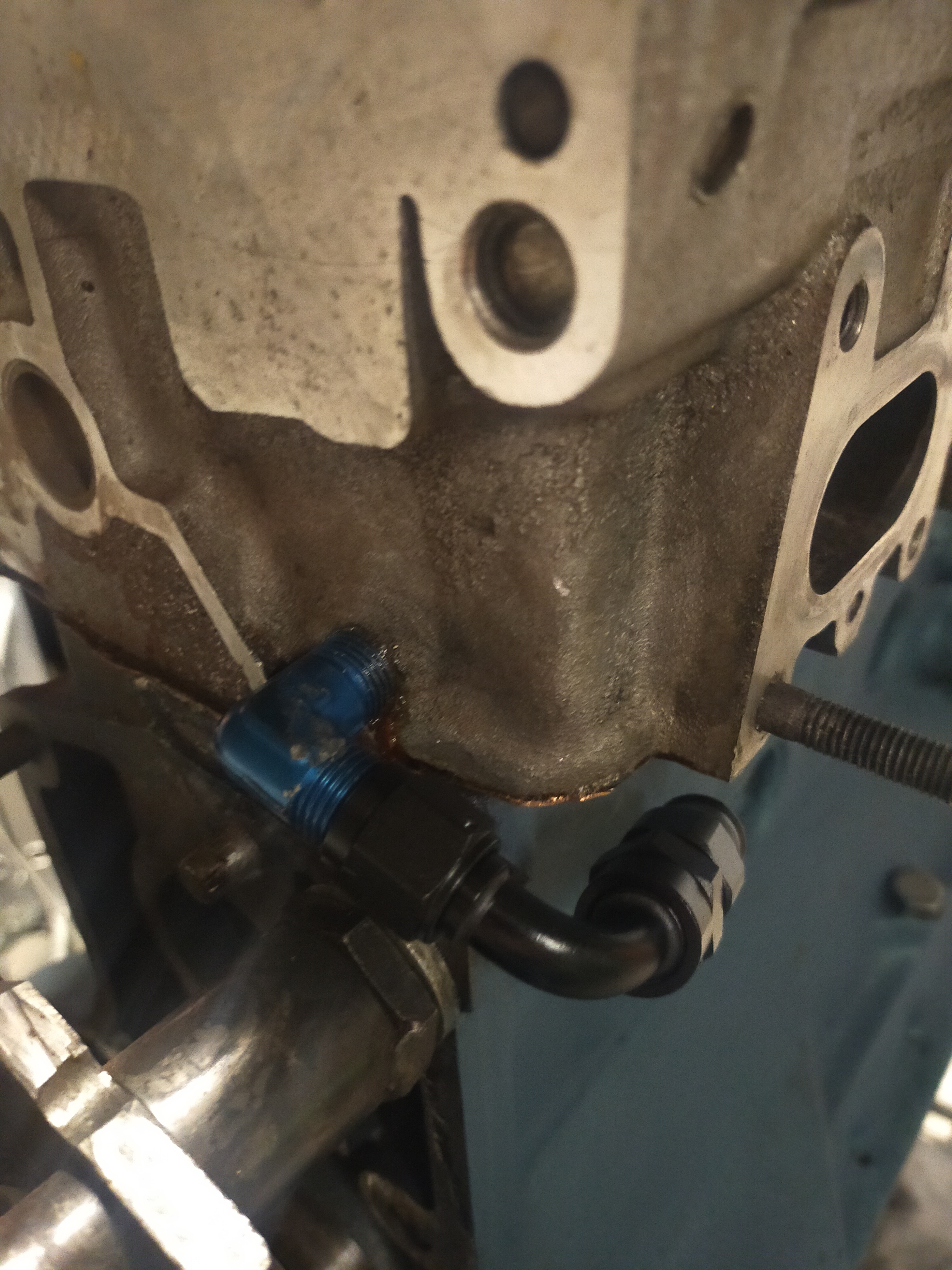 Les trous d'eau sont comparables, avec un peu de modifs,, l'huile montera à la culasse par durite aviation externe à l'arrière de la culasse, d'origine l'huile monte par un puits de vis de culasse, ça commande aussi la pression pour la VT, commandé par le megasquirt