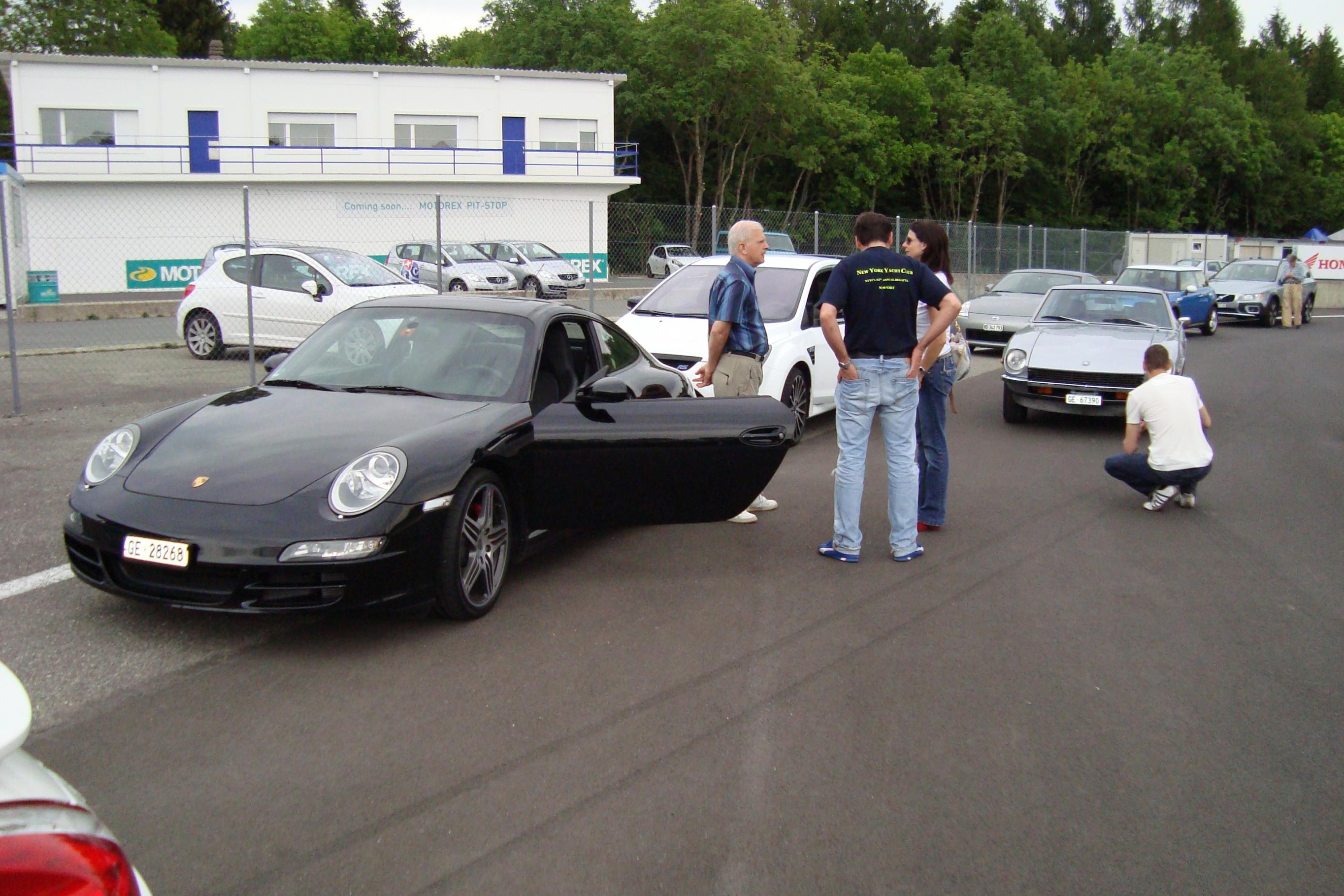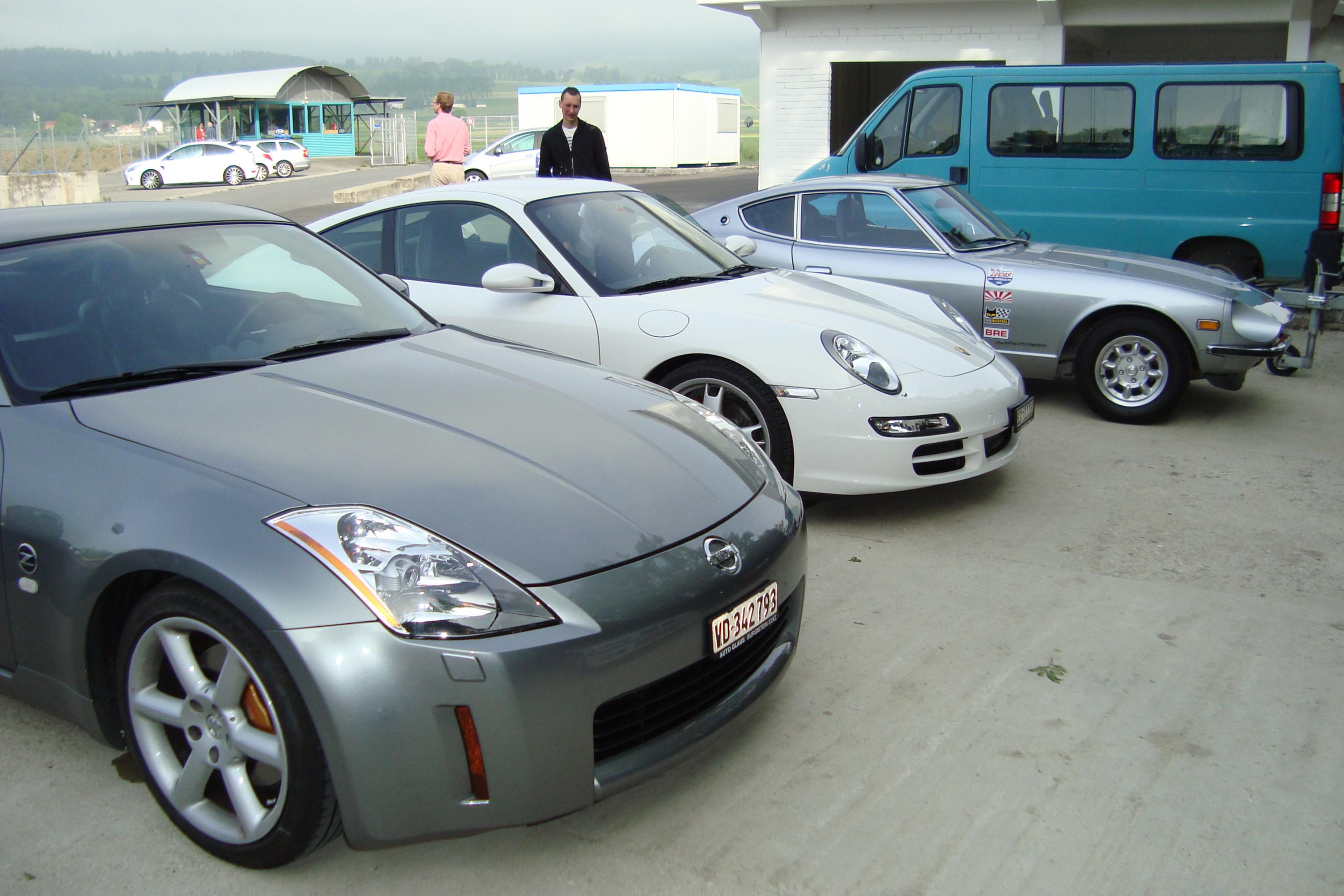 Une centaine de kilomètres d’autoroute avec une moyenne très respectable que je n’oserai pas divulguer sur un forum, puis quelques petits lacets dans le bas du Jura pour une petite mise en bouche, coup d’œil dans le rétro, tiens une 350Z qui me suis, ha haaaaaaaaa on va écrasé un peu plus la pédale, deux trois lacets, pfuit, plus de 350. Je la retrouvai plus tard sur le circuit. Une fois tous les participants arrivés, je me rends compte que je suis le seul avec une vétéran, dommage. Après une matinée bien remplie, négociation de courbes, entrée et sortie de courbes avec chronométrage, virage sur piste mouillée, limite drift. L’après-midi, séance de roulage et roulage et encore roulage, super. Une très belle journée, un bon rafraîchissement des connaissances ne fait jamais de mal. Un petit débriefing, départ et là … surprise : Mitx, il m’emmène à son garage pour me montrer sa 240z. Discussion, puis départ pour Genève et je peux vous dire que ma 240 après une journée de circuit, et il faisait chaud, est super ! Rentré sans encombre, bonne moyenne, beau son, pas de petits bruits suspects, rien que du bonheur. Elle est prête pour le tour de Corse. Voici quelques photos