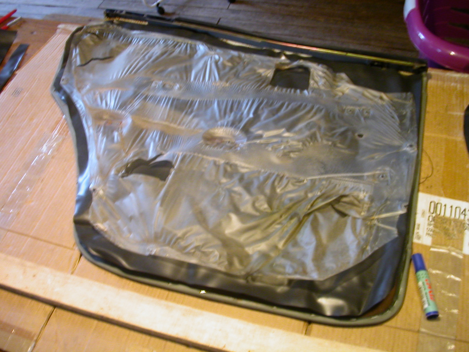 Comme il fait un froid de chien, confection d'isolant des garnitures de portes avec de la bâche que mon père à acheté pour refaire le bassin car ceux d'origine sont fatigué depuis 33ans...