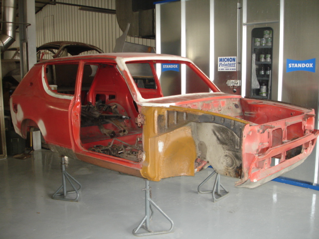 reste la moquette (en cours de fabriquation),les baguettes de marche-pied,les ecussons de custode (si quelqu'un sait ou en trouver),les joints de porte(en provenance de thaillande),le pare-brise (ici fin mars),les bavettes de berceaux,les baguettes de bas de caisse,la geometrie,les plaques et le controle!!!!!!!!!!!!!!