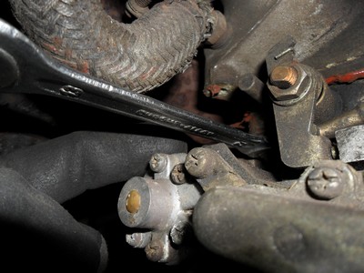 ( en vert arrivée d'essence ne pas oublier de démonter lol)-5/ Voici une clé de 12 que j'ai du modifier pour pouvoir démonter les écrous
