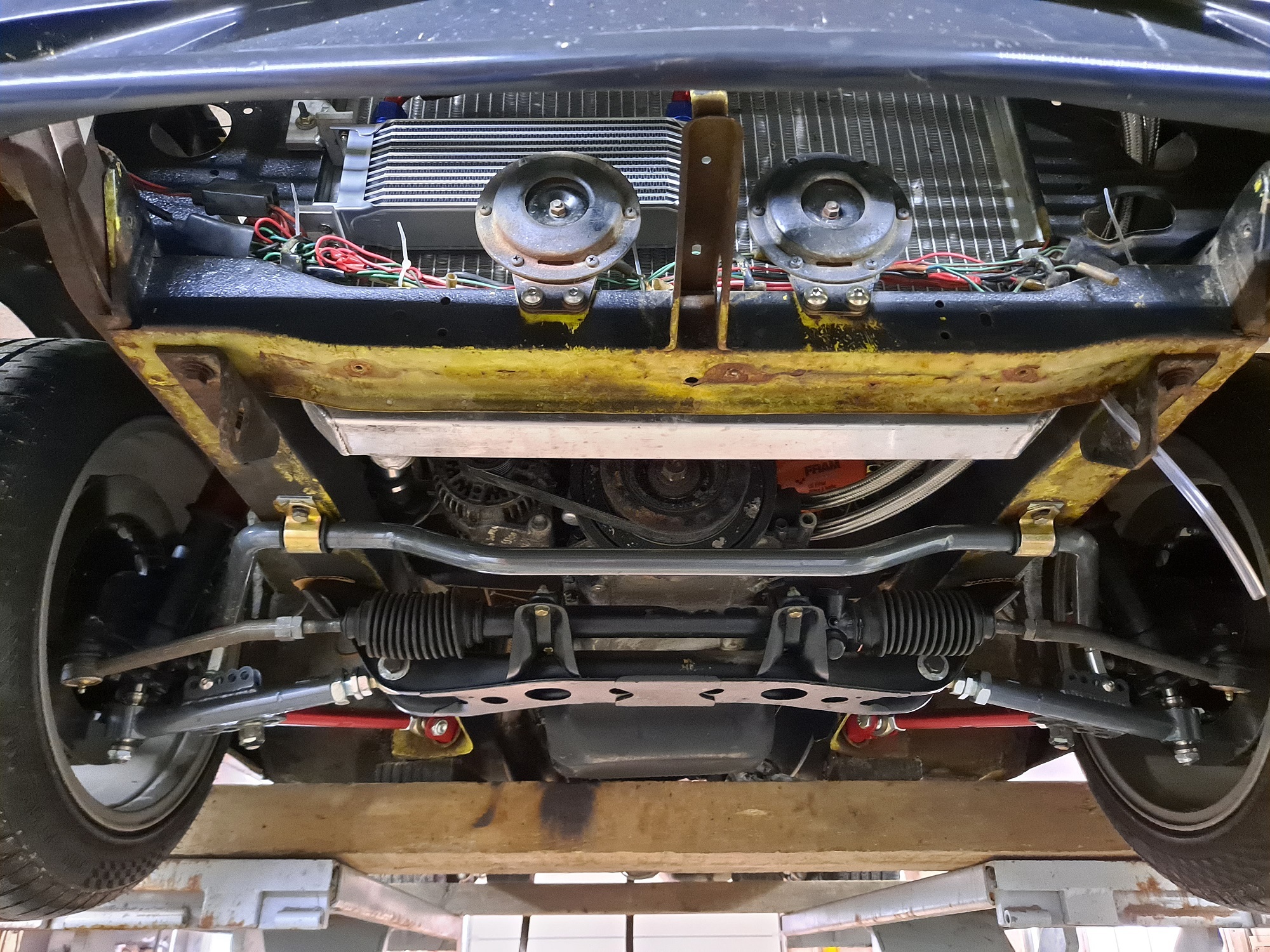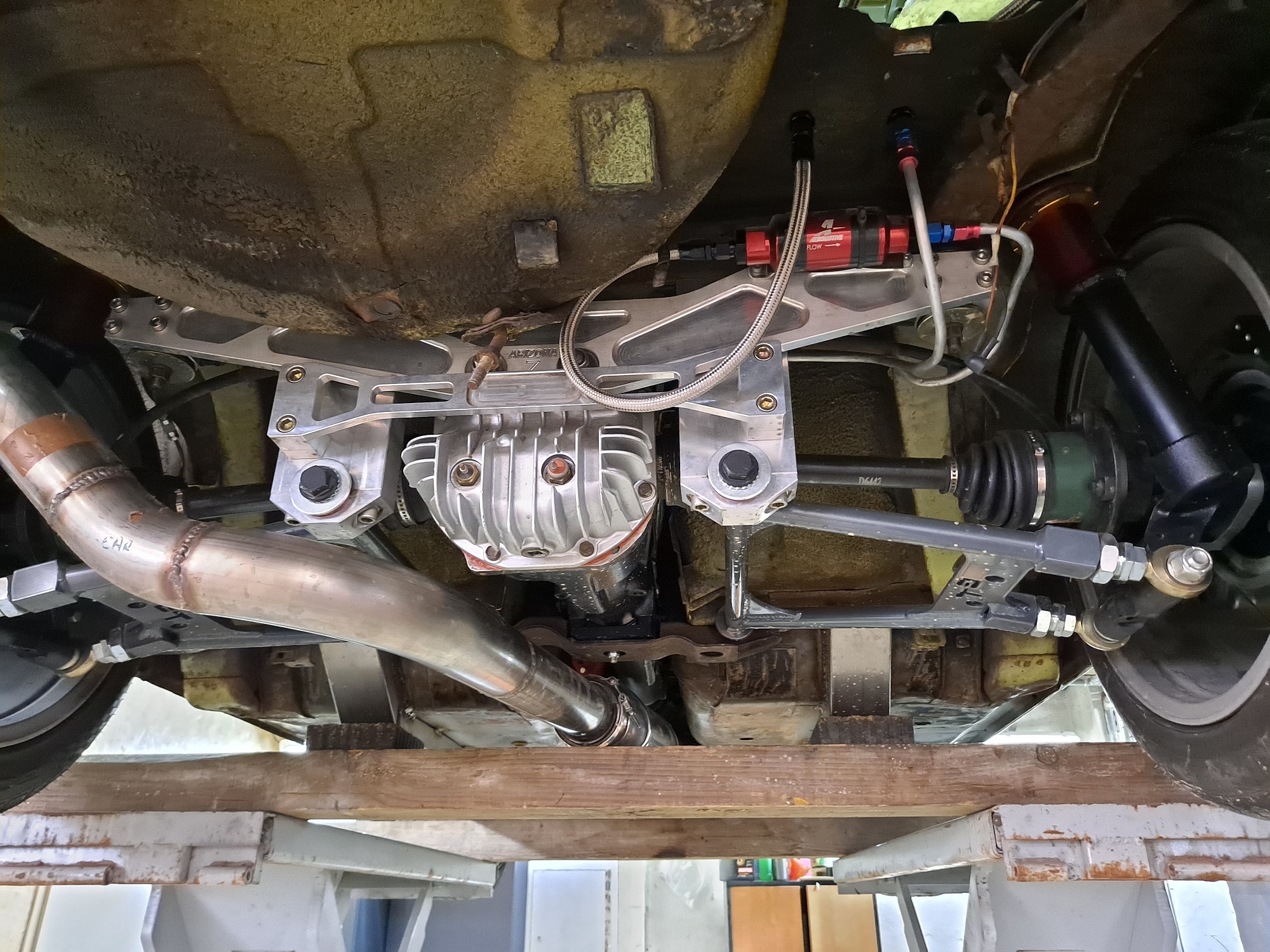 oui l'ensemble en gros, support moteur, boite, comment as tu fait ton arbre, ton faisceau,l'echappement, la pompe a essence etc ...
