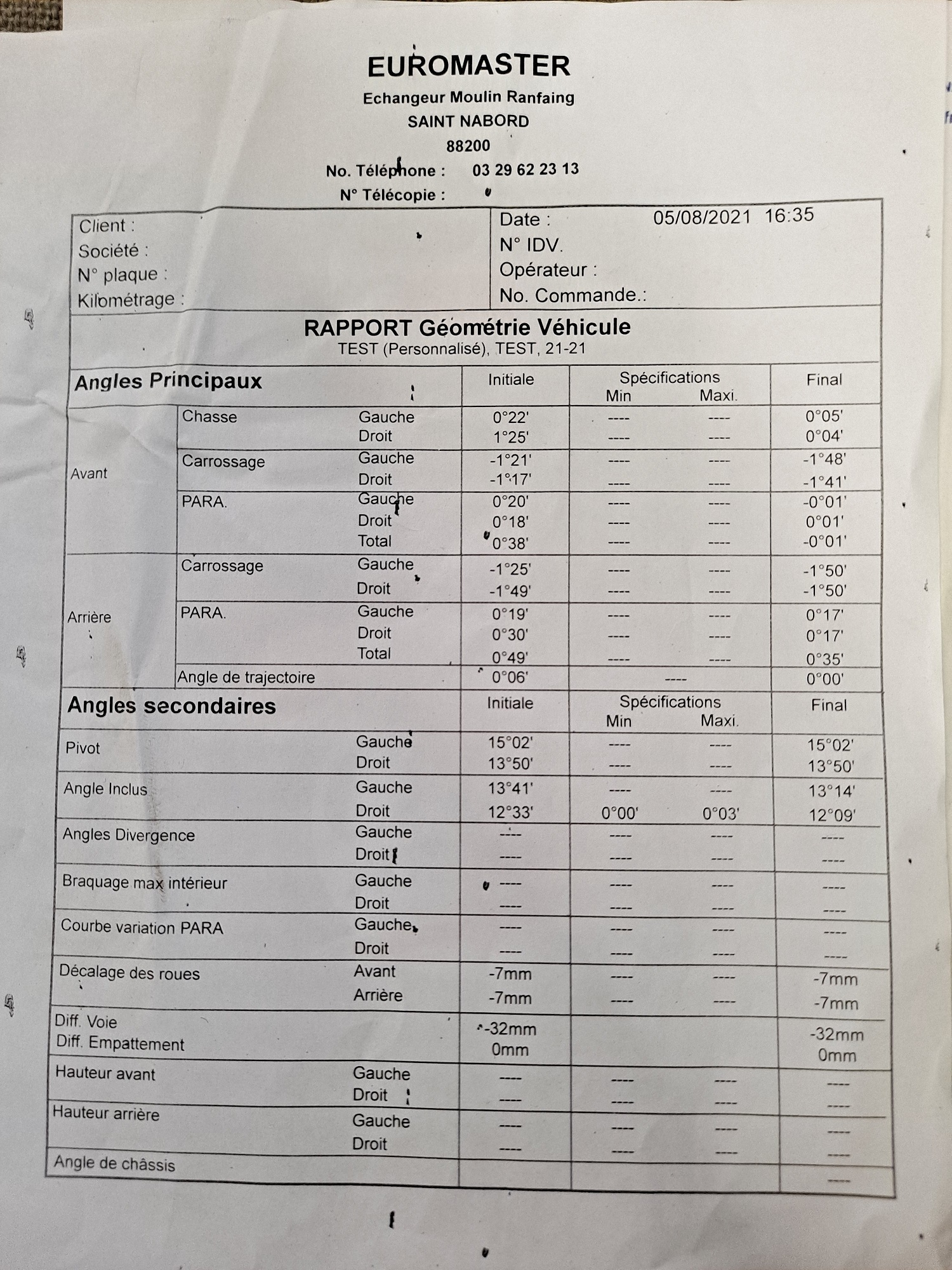 j'ai -1° a l'avant et je pourrais un mettre un chouil de plus en routier. A voir sur circuit.