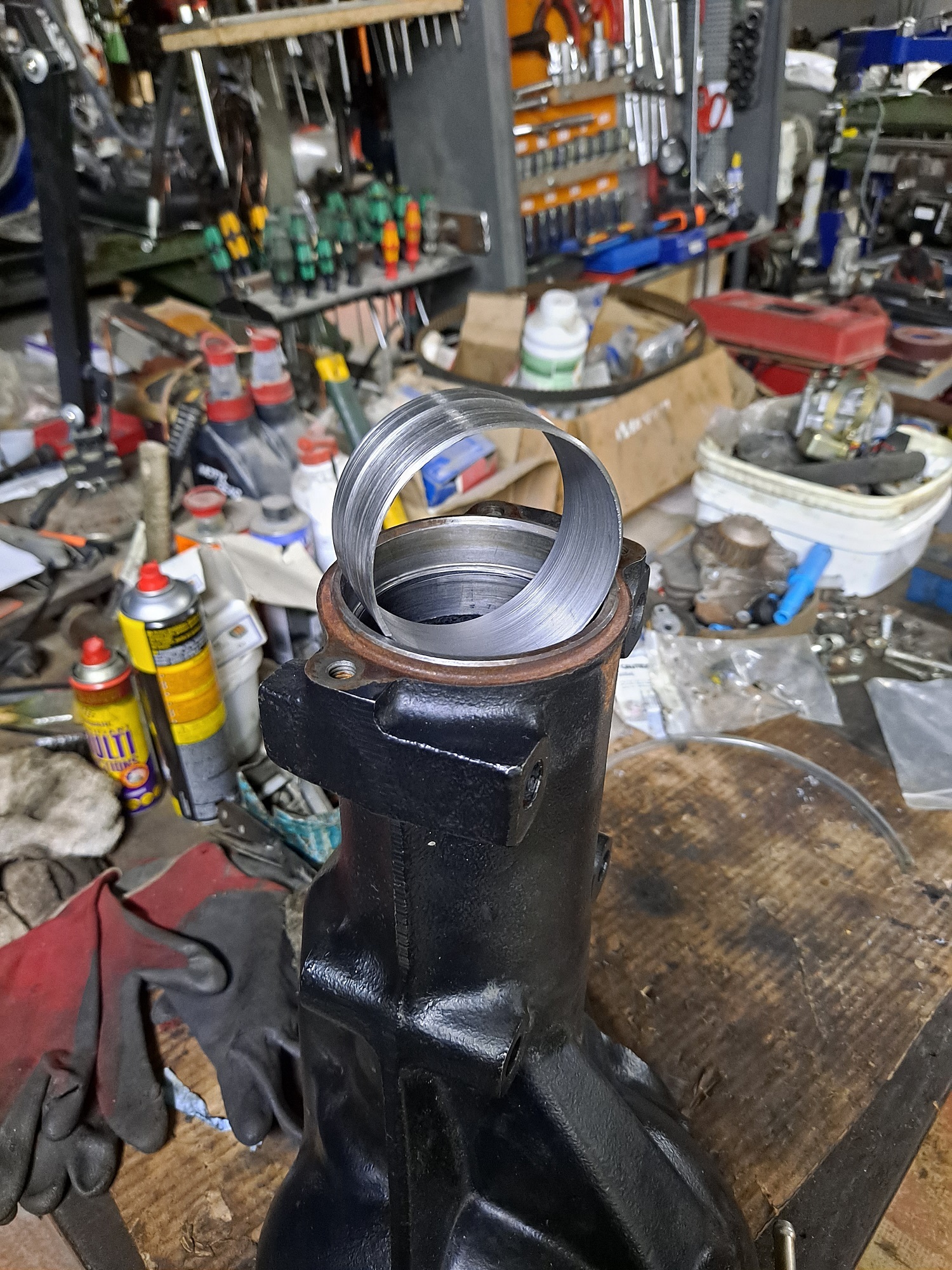 Le roulement KOYO 83601A étant compliqué à trouver à prix raisonnable, j'ai usiné une bague pour mettre un autre roulement... (je passe d'un diamètre 73 à 70mm)