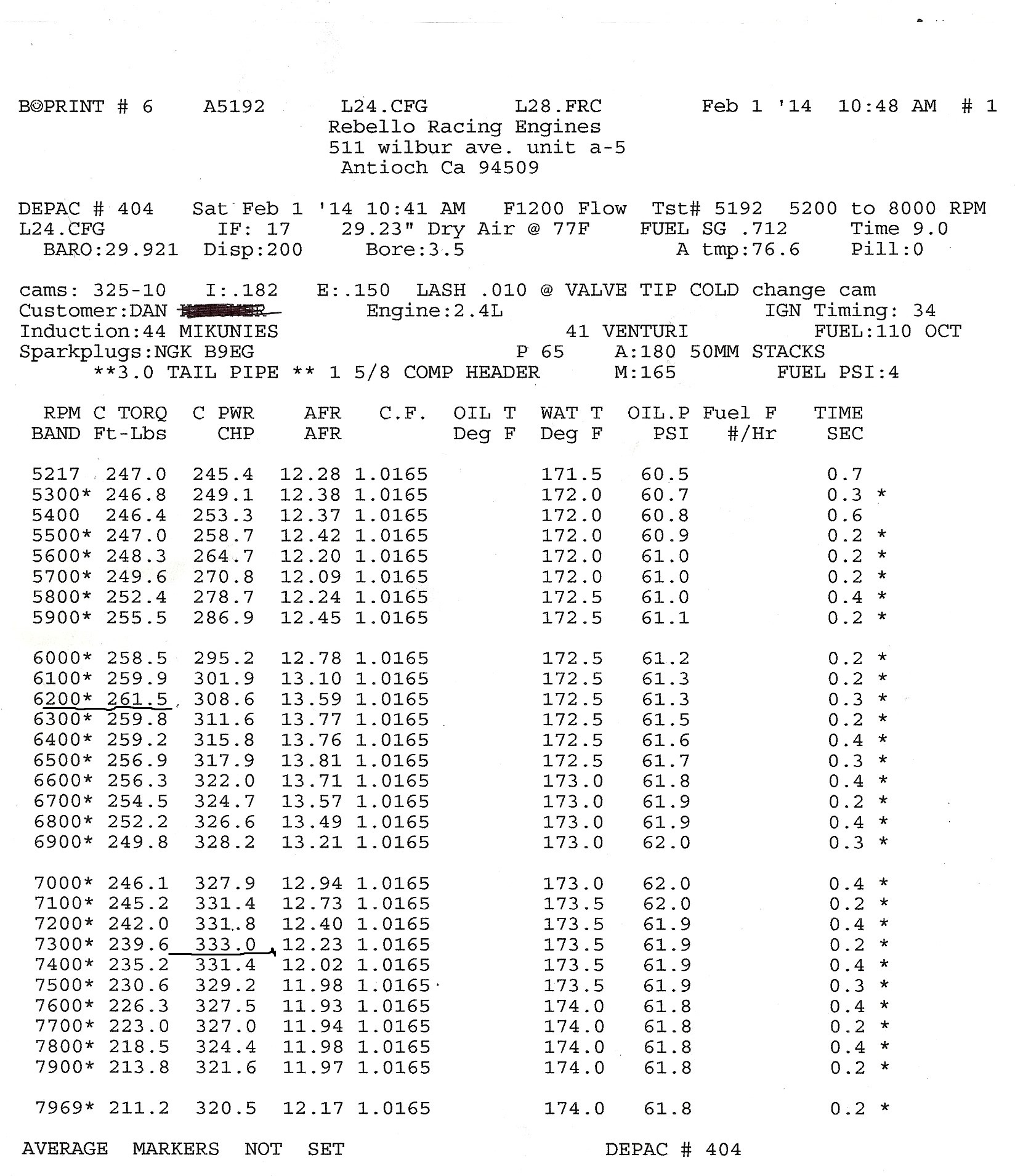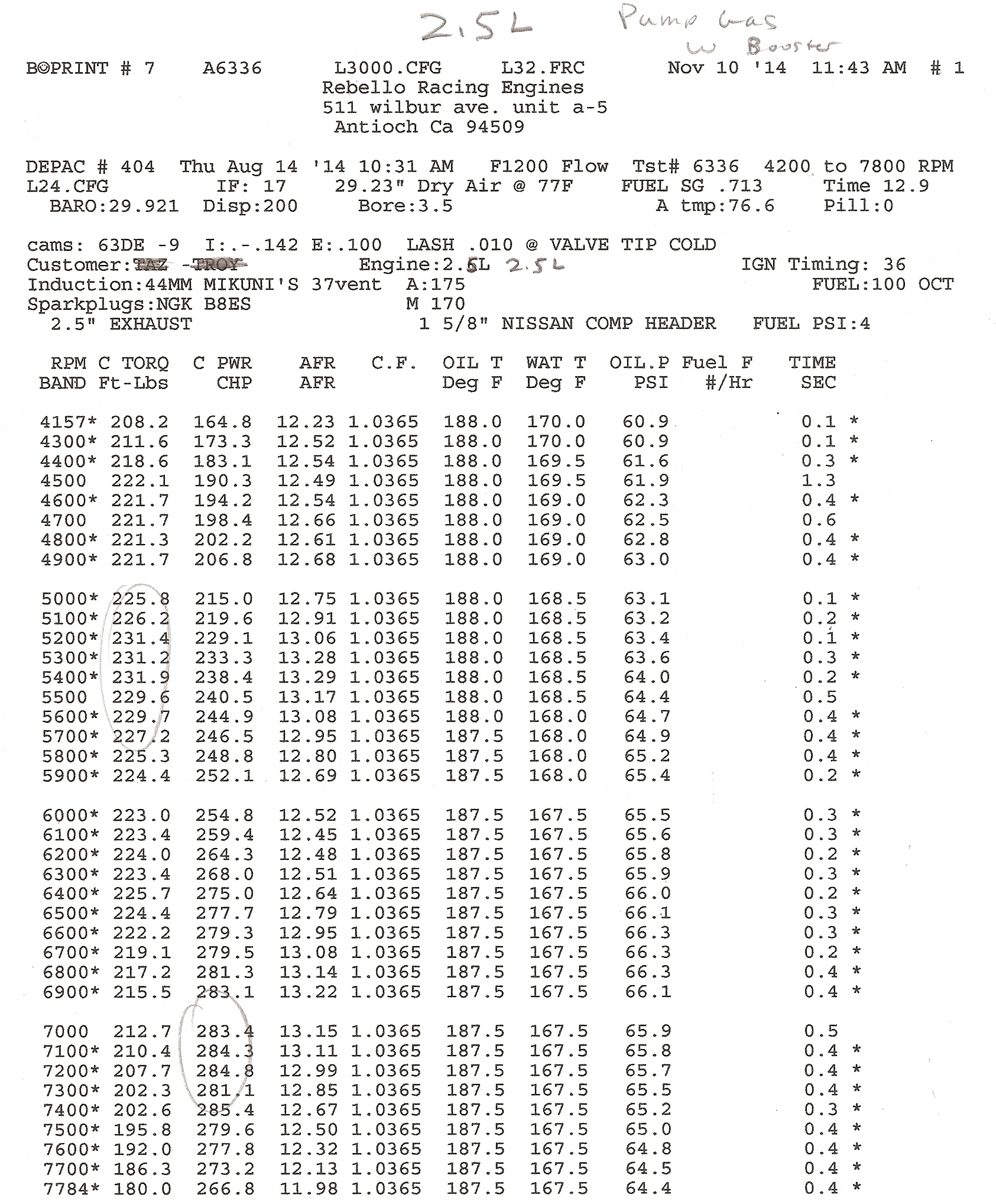 "Rebello Racing 3.2L de mon ami est assez faible sur le pouvoir que le dyno prouvé. (voir pièce jointe)