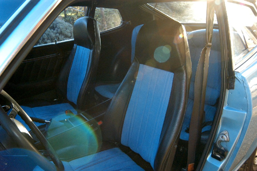 'velour' inserts à partir de '77 je crois mais normalement noire ou marron. L'ancien proprio se laché aussi eh ?