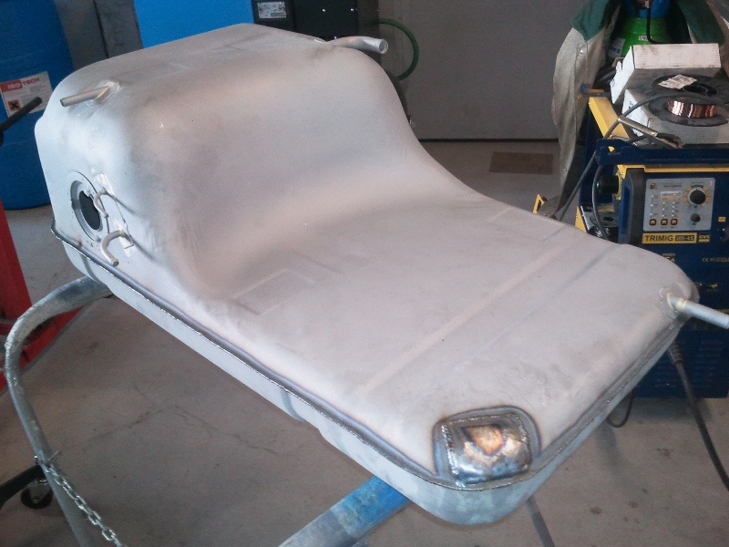 Il y avait aussi un trou à boucher sur le coin du réservoir, une tôle a été formée et ajoutée. Le réservoir est désormais prêt pour un traitement inside-out.