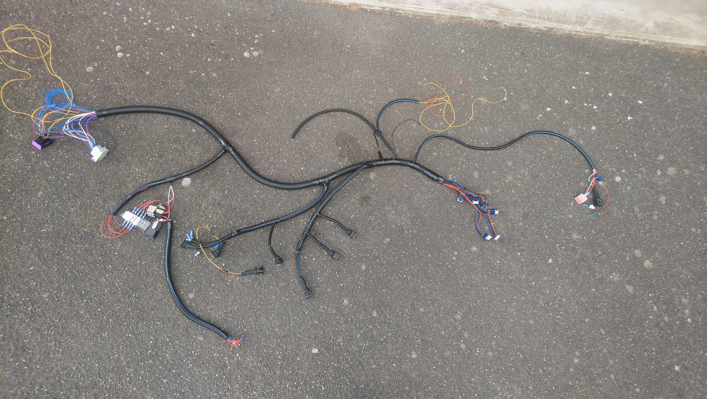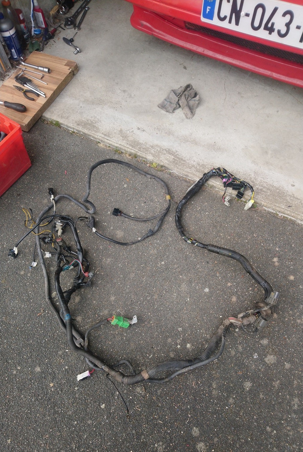 Alors une fois que j'ai eu enlever le faisceau moteur d'origine, j'ai tiré grossièrement les nouveaux fils qui allait me servir:
