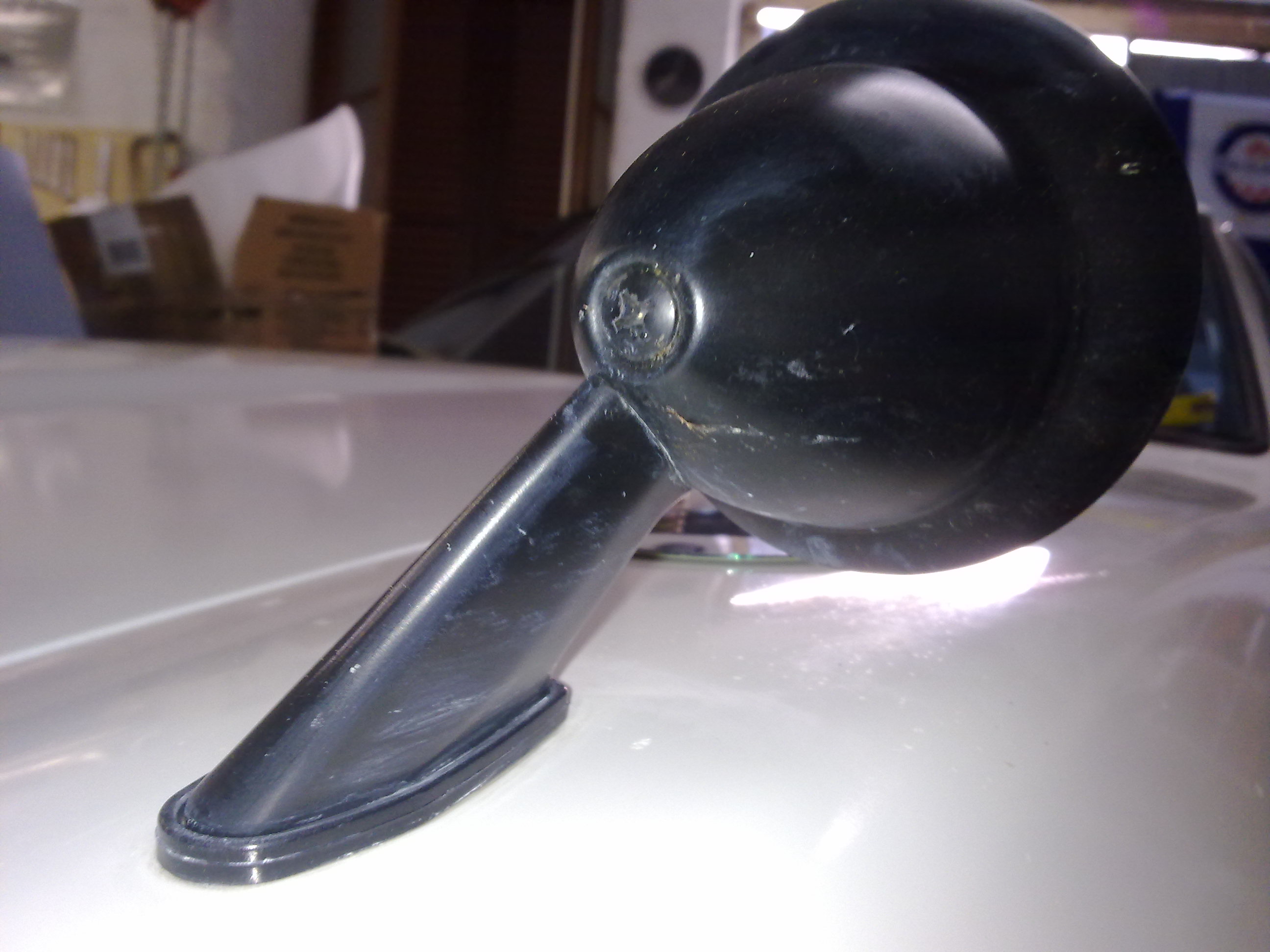 il y a une seule vis pour le fixer. La vis est articulé à la base du bras du rétroviseur. L'écrou qui vient sur cette vis appuie sur un ressort qui est dans le cache en plastique cylindrique. Ça permet au rétroviseur de bouger en cas de choc et revenir en place après.