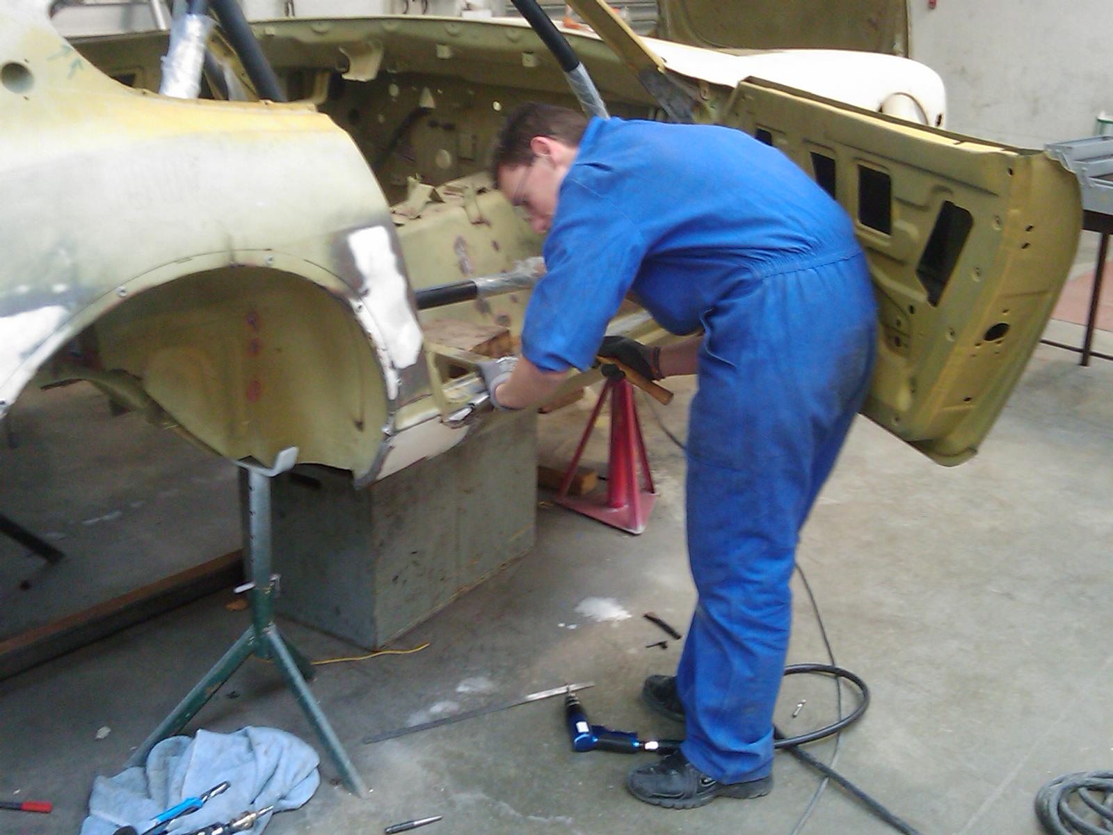 Donc on recommence ?a comme il faut (cette fois je le fait moi m?me) avec des ?l?ves de m?canique a qui j'apprends la tolerie