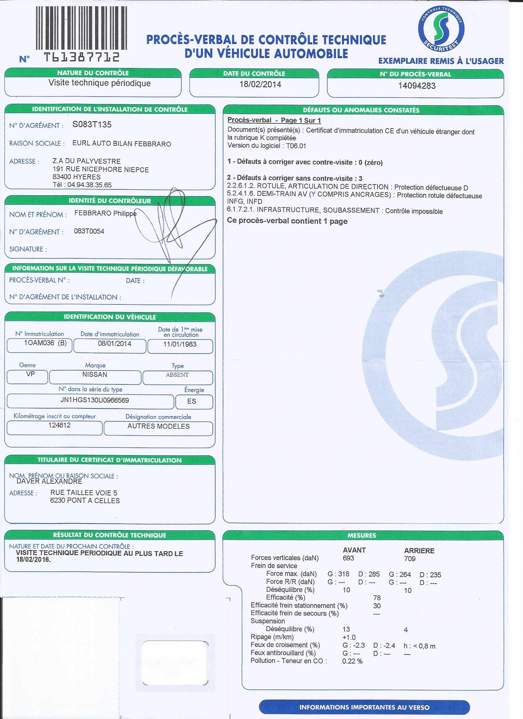 Messieurs, si elle roule en Suisse, les autorités hélvétiques en matière de contrôle technique se sont probablement chargés du contrôle!