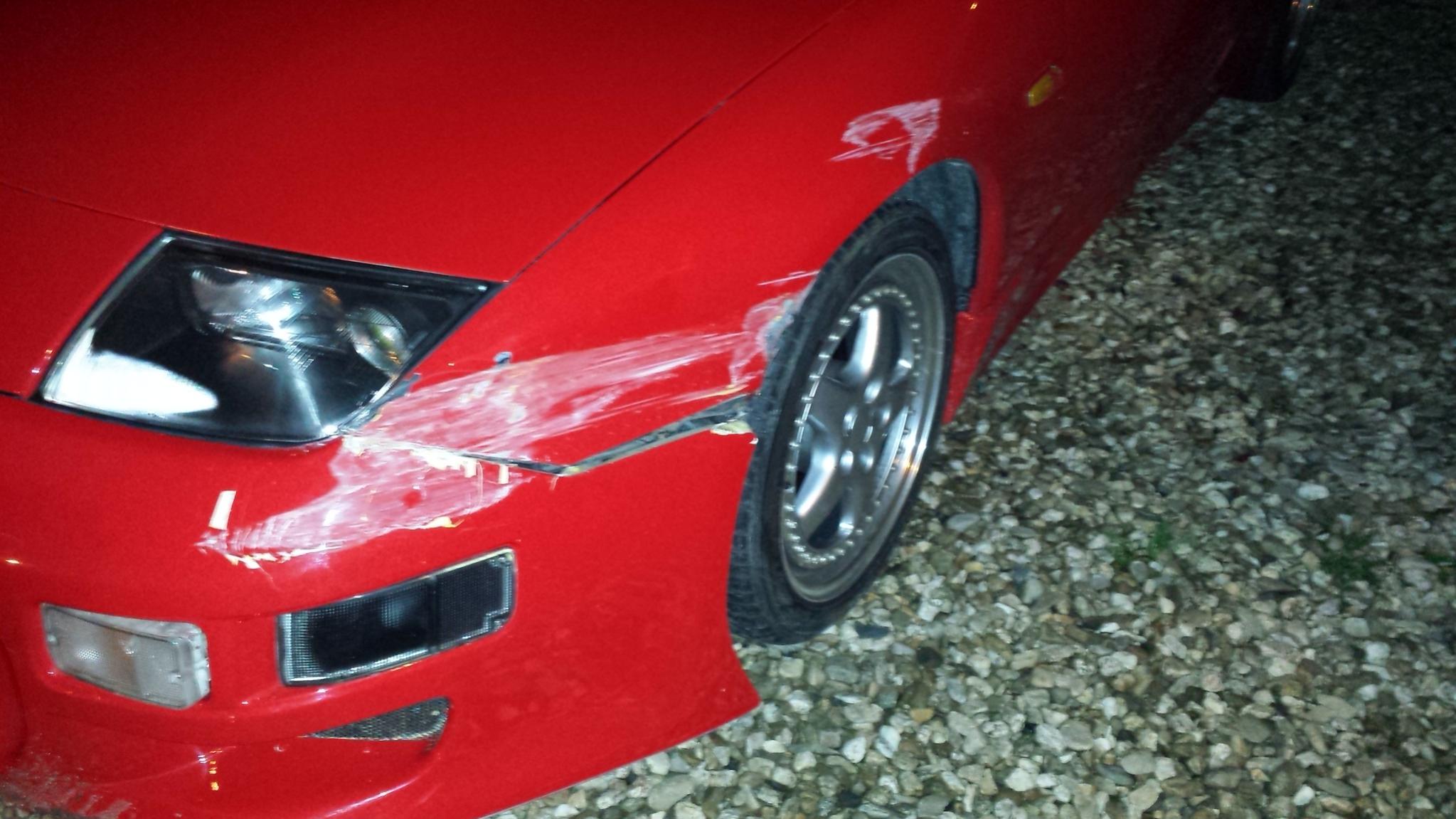 c'est entièrement ma faute, j'ai remis les gaz, trop tôt à la sortie d'un rond point et la voiture a fait un 360 puis est venue frottée la barrière.
