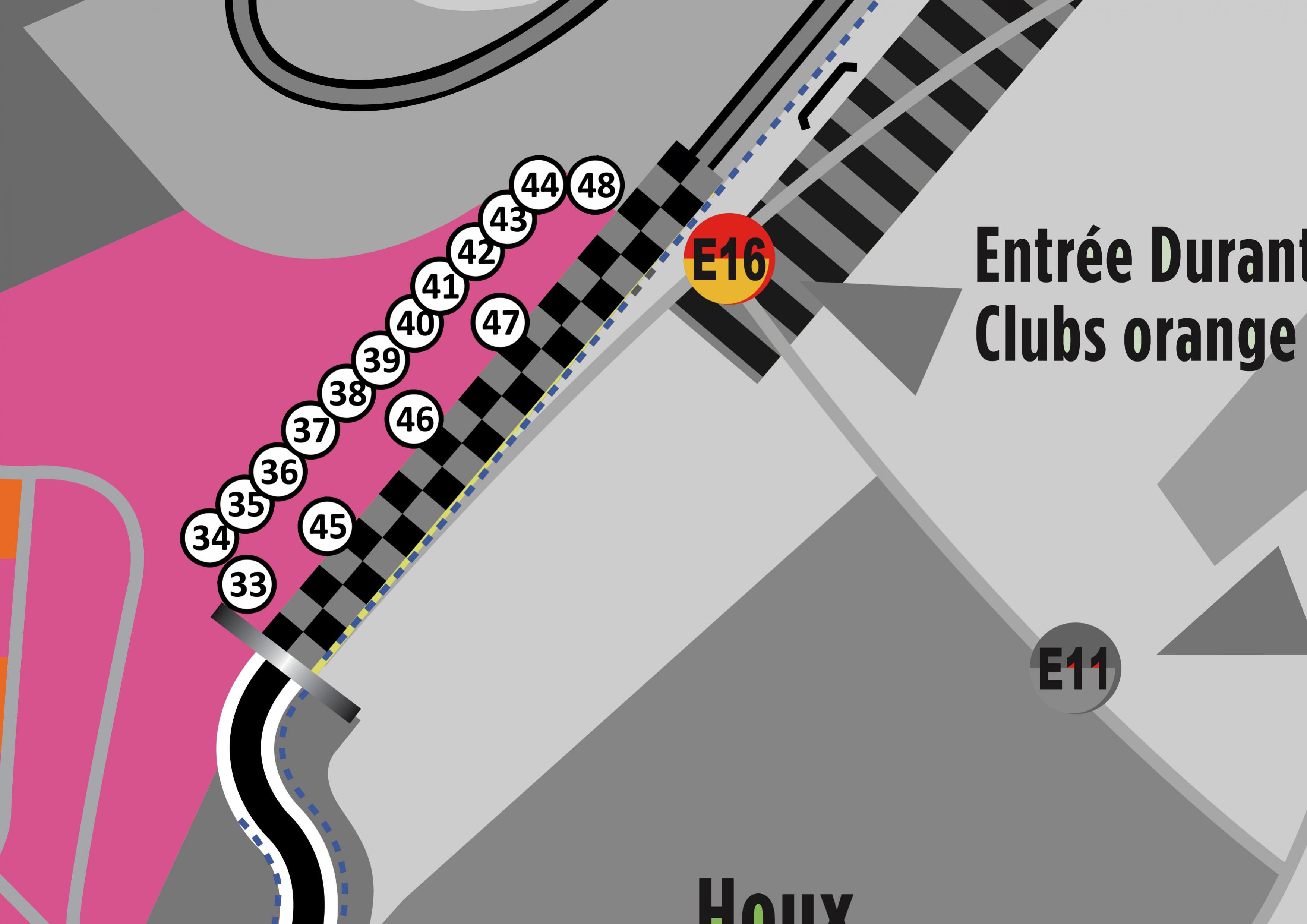 Notre stand est au-dessus de la tâche la plus à gauche à l'intérieur du circuit Bugatti