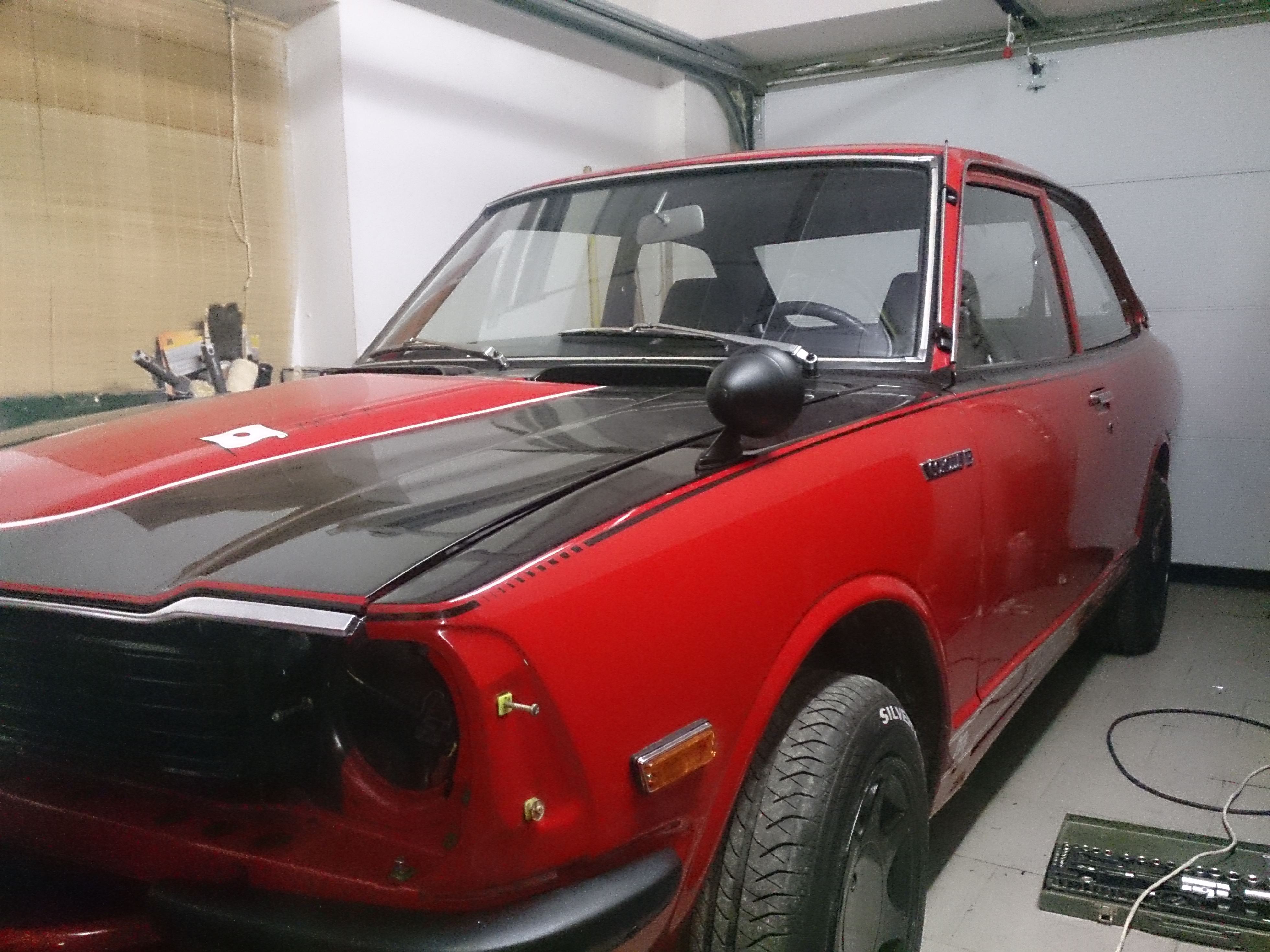 )Donc la bête est une Toyota Corolla type KE 20 de 1979 (certainement une des toutes dernières sorties de chaîne) avec moteur 1.2 et 73 ch.
