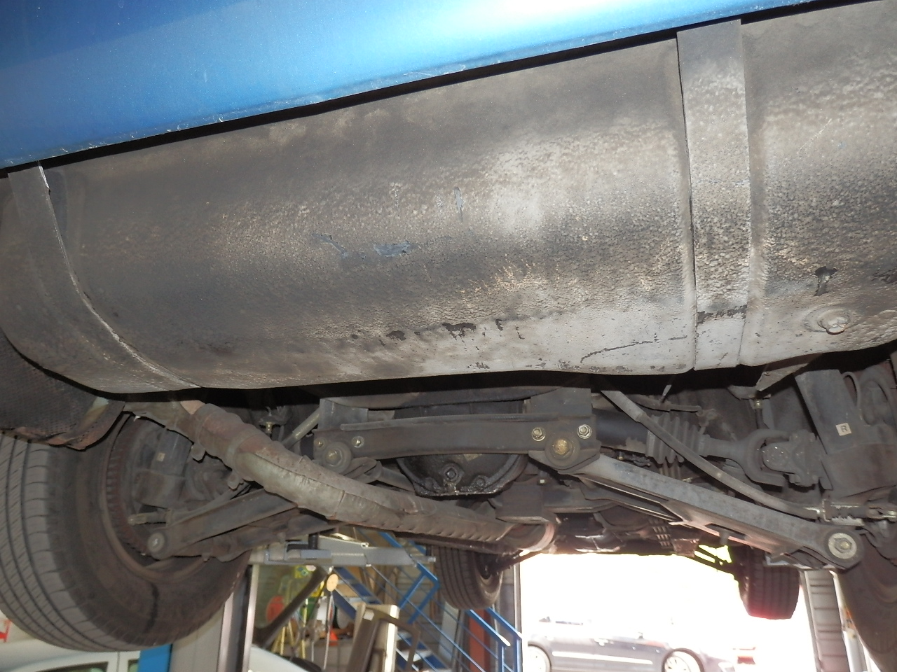 Le pont et la boîte fuient un peu... c'est pour ça que ça va être changé pour une boite 5 avec pont neuf et embrayage neuf... le truc bizarre sur la ligne d'échappement n'est en fait qu'une protection ! le pot sera changé toutefois pour un inox de chez Sean.